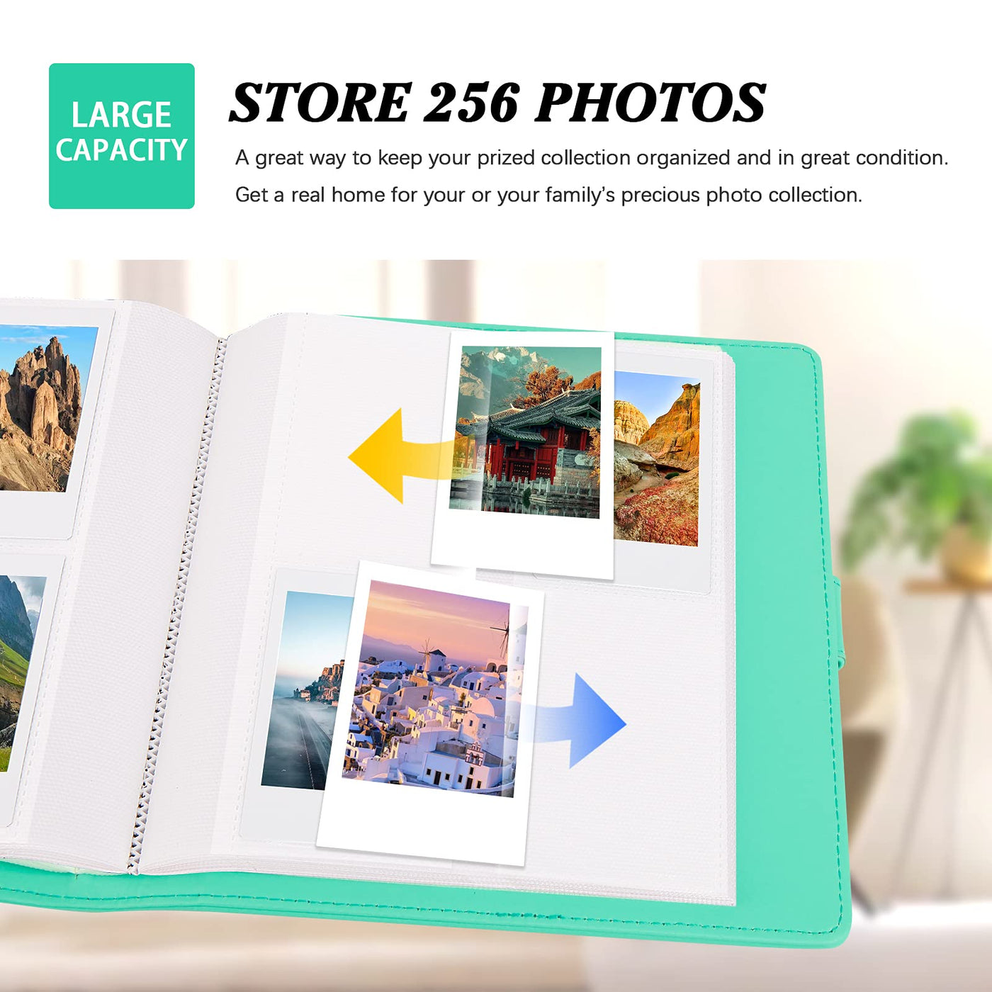 256 Photos Album For Fujifilm Instax Mini Camera, Polaroid 2�X3� Zink Pictures, 2X3 Photo Album Book For Fujifilm Instax Mini 11 12 9 90 70 40 8 Instant Camera, For Instax Mini Instant Film (Green)
