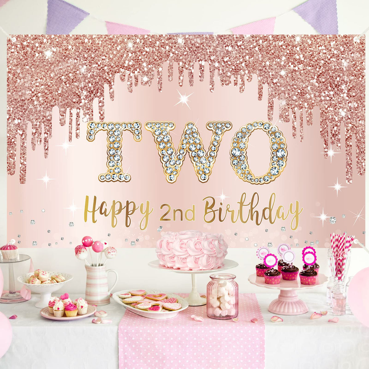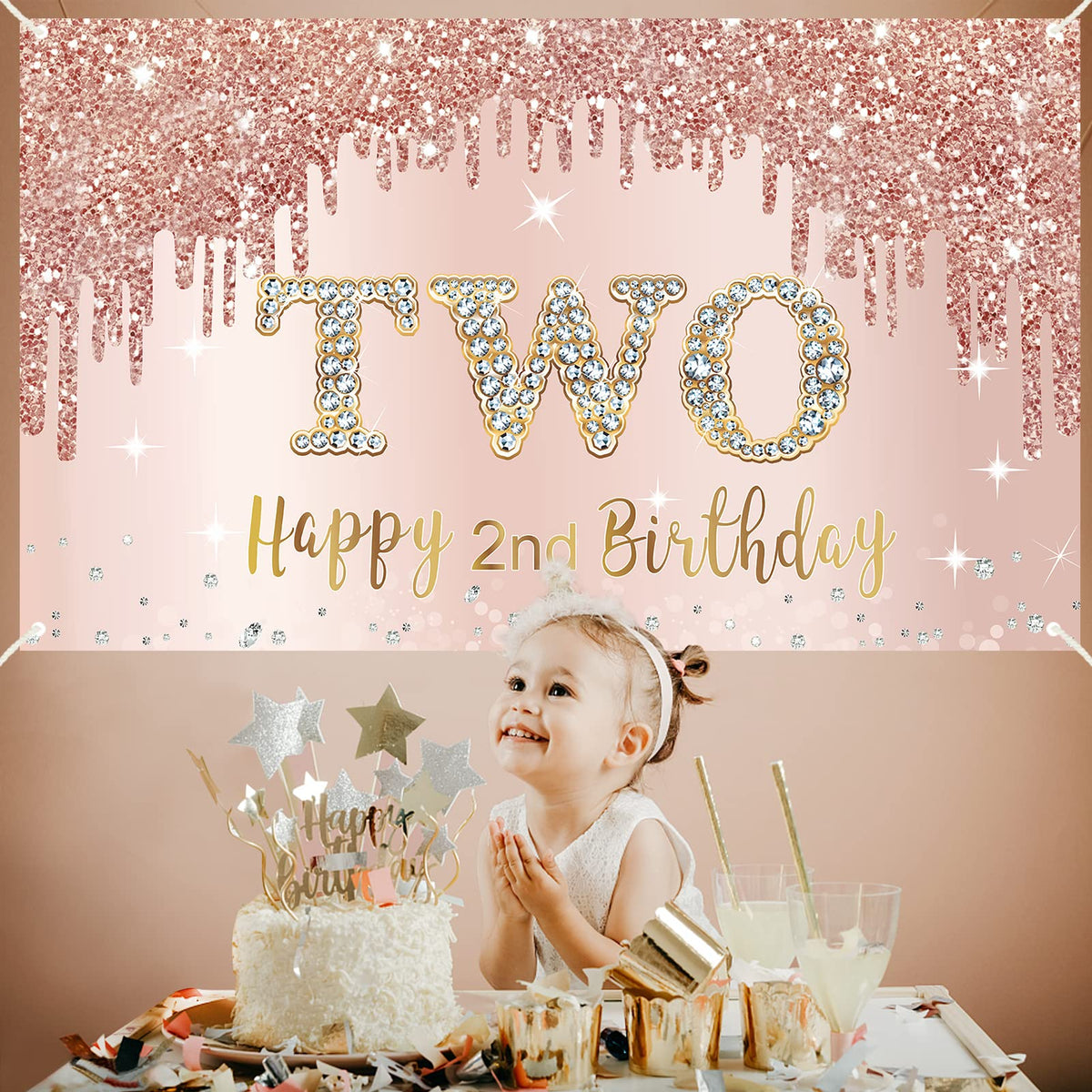 2Nd Birthday Banner Backdrop Decorations For Girls Material: High-Quality Polyester Size: 73 X 43 Inches Color: Rose Gold, Pink Easy To Use: Very Easy To Assemble. Our Large Posters Have Copper Holes At Four Corners And Are Equipped With Ropes. You Only Need To Use The Attached Rope To Pass Through The Copper Hole And You Can Easily Hang It Anywhere You Want To Decorate. Wide Use: You Can Hang Them On The Front Door, Porch, Wall, Window, Ceiling, Garden, And Other Places To Decorate The Party. At The Same Time, It Is Also A Good Photography Prop And Photography Background. Package Includes: 1 X Happy 2Nd Birthday Banner Backdrop With Ribbon