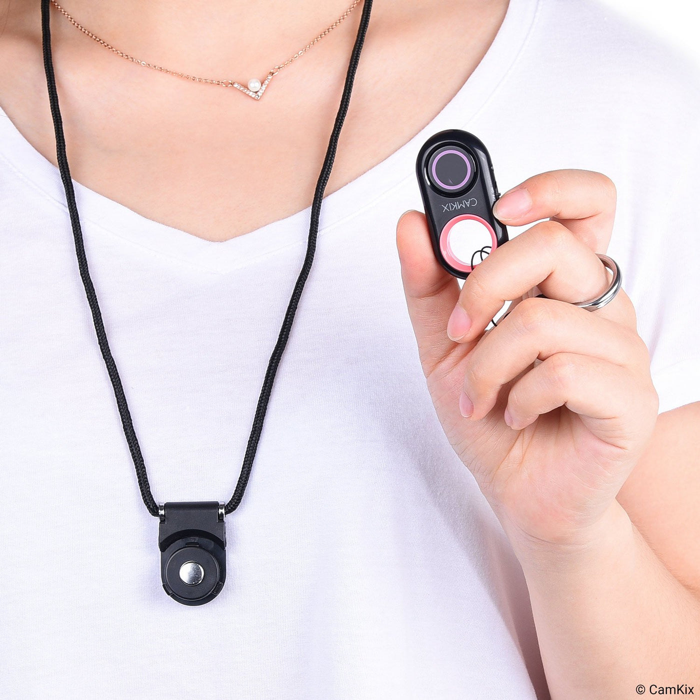 Camkix Camera Shutter Remote Control. Ring-Shaped Design With Carabiner And Lanyard With Detachable Ring Mount.