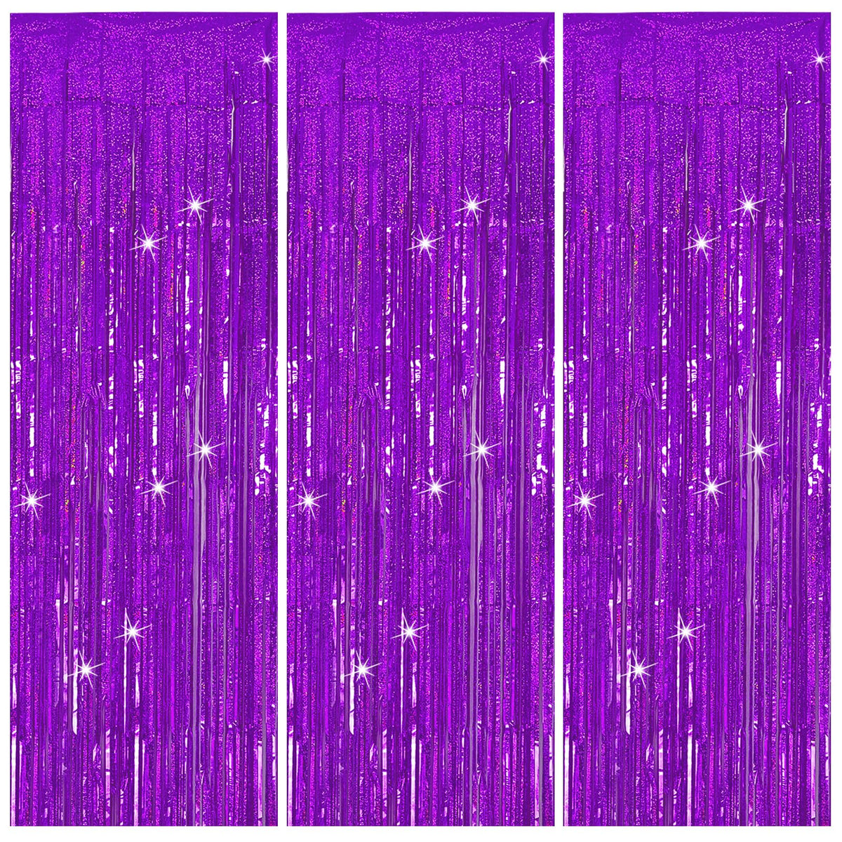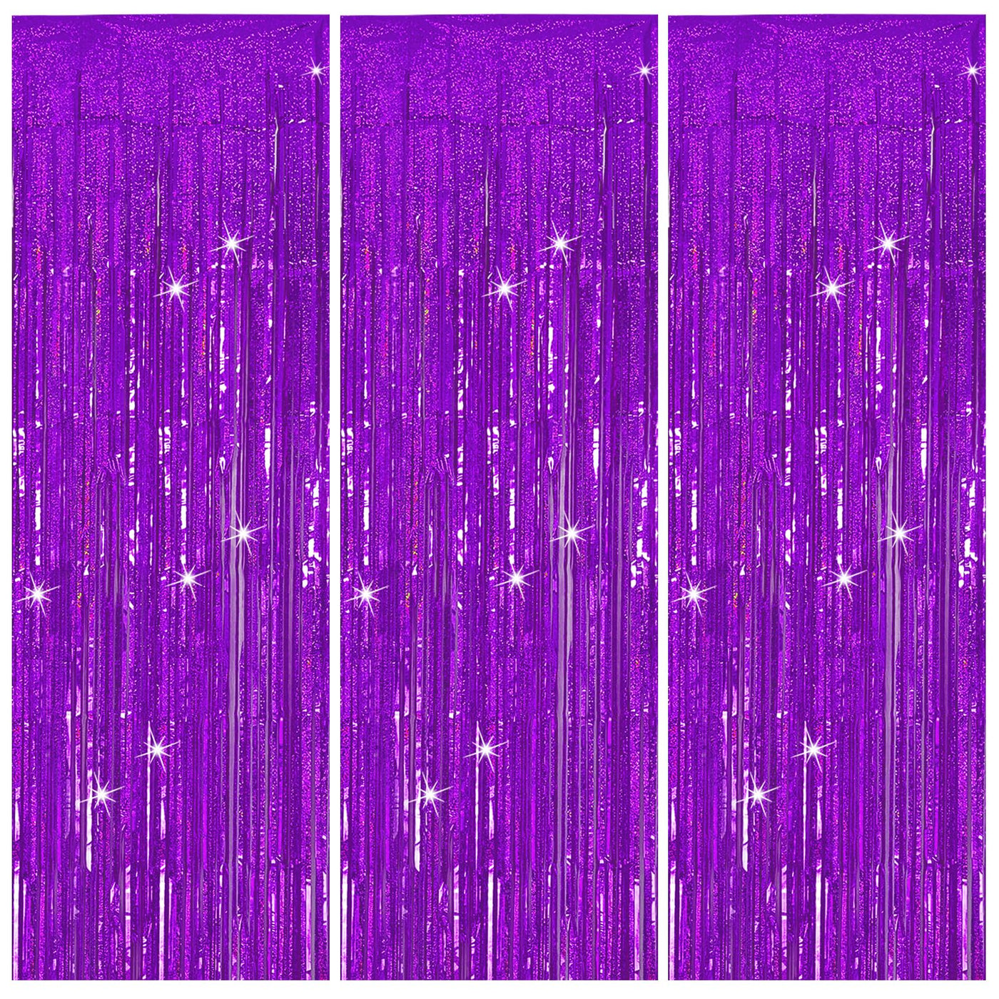 Purple Party Decorations:3 Packs Of Foil Fringe Curtains, The Size Of The Foil Curtain Is 3.28 Ft X 6.56 Ft.It'S Long Enough To Fit Any Occasion. Please Do Not Stick The Foil Curtain On Uneven Or Stained Walls To Prevent It From Falling Off. | Material:This Foil Curtain Backdrop Is Made Of Tinsel. Metallic Streamers Are Available In A Variety Of Beautiful Colors With A Shiny And Reflective Surface That Creates An Eye-Catching And Mesmerizing Effect. Unfold It And Then Enjoy Your Glittering Party. | Purple Streamers:The Back Of Fringe Curtain Has Double-Sided Tape, Which Can Be Stuck Very Firmly To Any Place You Want Such As Walls, Tables, Door Frames. You Can Use Scissors To Cut The Length You Want, And You Can Use Two Or More Pieces Of The Curtain To Splice And Overlap. | Applicable Scenes: The Foil Backdrop Are Wonderful Finishing Touch For Any Theme Party Such As Birthday, St Patrick'S Day, Wedding, Engagement, Bridal Shower, Bachelorette, Holiday Celebration, Halloween, Graduation, Anniversary, Hollywood Party, Homecoming, Christmas Or New Year, Etc. | Customer Service:When Your Package Arrives, Check It And Contact Us If Anything Is Defective Or Missing.