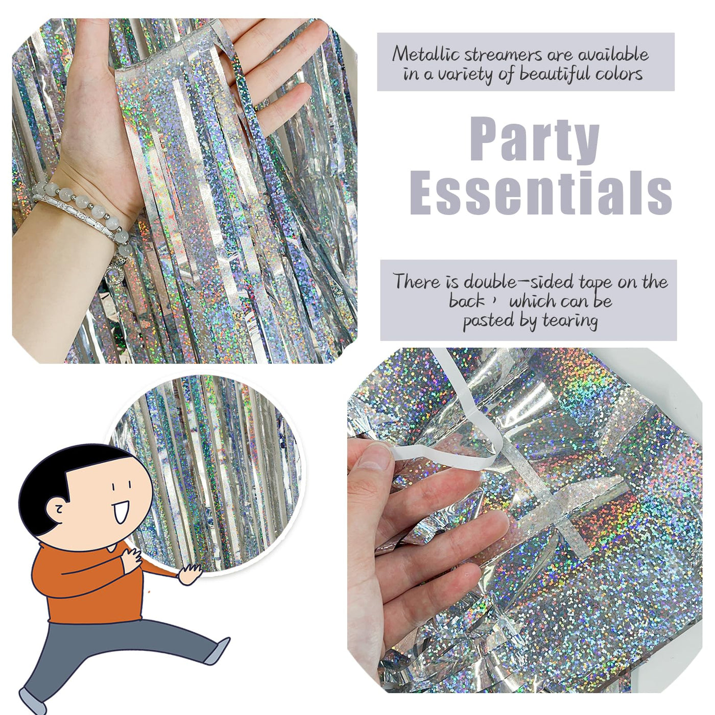 Disco Party Decorations:3 Packs Of Foil Fringe Curtains, The Size Of The Foil Curtain Is 3.28 Ft X 6.56 Ft.It'S Long Enough To Fit Any Occasion. Please Do Not Stick The Foil Curtain On Uneven Or Stained Walls To Prevent It From Falling Off. | Material:This Foil Curtain Backdrop Is Made Of Tinsel. Metallic Streamers Are Available In A Variety Of Beautiful Colors With A Shiny And Reflective Surface That Creates An Eye-Catching And Mesmerizing Effect. Unfold It And Then Enjoy Your Glittering Party. | Silver Backdrop Curtain:The Back Of Fringe Curtain Has Double-Sided Tape, Which Can Be Stuck Very Firmly To Any Place You Want Such As Walls, Tables, Door Frames. You Can Use Scissors To Cut The Length You Want, And You Can Use Two Or More Pieces Of The Curtain To Splice And Overlap. | Applicable Scenes: The Foil Backdrop Are Wonderful Finishing Touch For Any Theme Party Such As Birthday, St Patrick'S Day, Wedding, Engagement, Bridal Shower, Bachelorette, Holiday Celebration, Halloween, Graduation, Anniversary, Hollywood Party, Homecoming, Christmas Or New Year, Etc. | Customer Service:When Your Package Arrives, Check It And Contact Us If Anything Is Defective Or Missing.