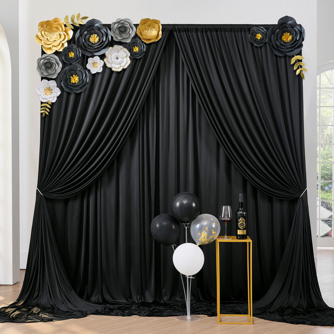 1. You Will Receive 6 Panels 5Ftx10Ft Backdrop Curtains For Parties. Totally 30Ft(Width) X 10Ft(Height). Cortinas Para Fiestas Decoracion. | 2. Wrinkle Free Fabric: Soft & Smooth; Drape Nicely; Washable; Ironable; Durable. You Can Keep It For Future Events. The Soft Fabric Backdrops Are Perfect To Create Beautiful Folds Or Leave It Flowing Loose Onto The Floor. | 3. Easy To Hang On: Come With A 4 Inches Rod Pocket. You Can Hang It On A Photo Backdrop Stand, Arch Backdrop Stand Or Balloon Arch Stand. (Machine Washable) | ? Large Black Photo Backdrop Is Suitable For The Birthday Curtain Backdrop,Baby Shower Backdrop,Wedding Backdrop,Party Backdrops For Wall,Dessert Tables Background,Photo Booth,Anniversary,Graduation, Home Decoration. | ? Black Drapes For Wedding Backdrop Can Be Machine Wash And Hand Wash.Drapes For Backdrop Can Customize With Various Colors And Element To Make Your Party Very Charming And Colourful.