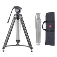 3Pod V3Ah 3 Section Aluminum Video Tripod For Camera, Professional Camera Tripod With 2 Way Fluid Head, Mid Level Spreader, Quick Release Plate, Max Load 8.8 Lbs., 61' Max Height Heavy Duty Tripod