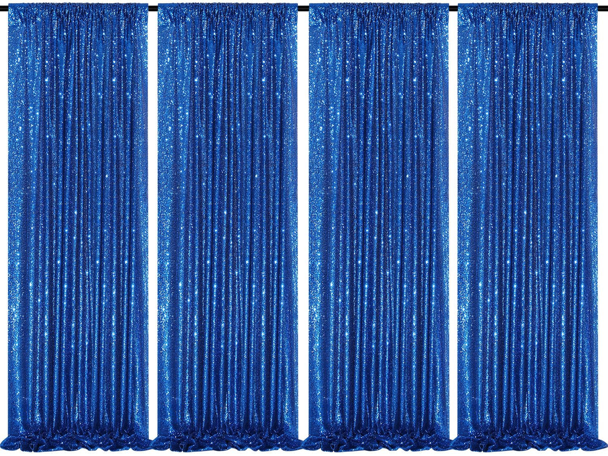 Royal Blue Backdrop Curtain: The Total Area Covered By Sequins Backdrop Is 4Ft Long X 8Ft Width,Each Package Contains 4 Packs 2Ft X 8Ft Party Sequin Backdrop.With A 4-Inch Rod Pocket On The Top For Easy Hanging. | Party Photo Backdrop: The Sequin Background Is Made Of 3Mm Round High Density Sequins Material With Mesh Fabric Backing.All Sides Over Locked With Folded And Hemmed Edges,Sequins Are Not Easy To Drop! | Seamless Sequin Photography Backdrop: It'S One Piece Together.Backdrop For Parties,Wedding Backdrop,Bridal And Baby Shower Backdrop,Birthday Backdrop,Photoshoot Backdrop And More. | Care Instructions: Dry Clean Only, Do Not Machine Wash And Iron To Avoid Sequins Falling Off. Please Fold And Put Back In The Bag After You Have Used The Background , You Can Use It Many Times! Durable Photo Booth Backdrop. | Applicable Place:The Glitter Backdrop Are Wonderful Finishing Touch For Any Theme Party.You Can Use It For Home, Banquets, Bars, Indoor And Outdoor Parties Decoration, Etc.
