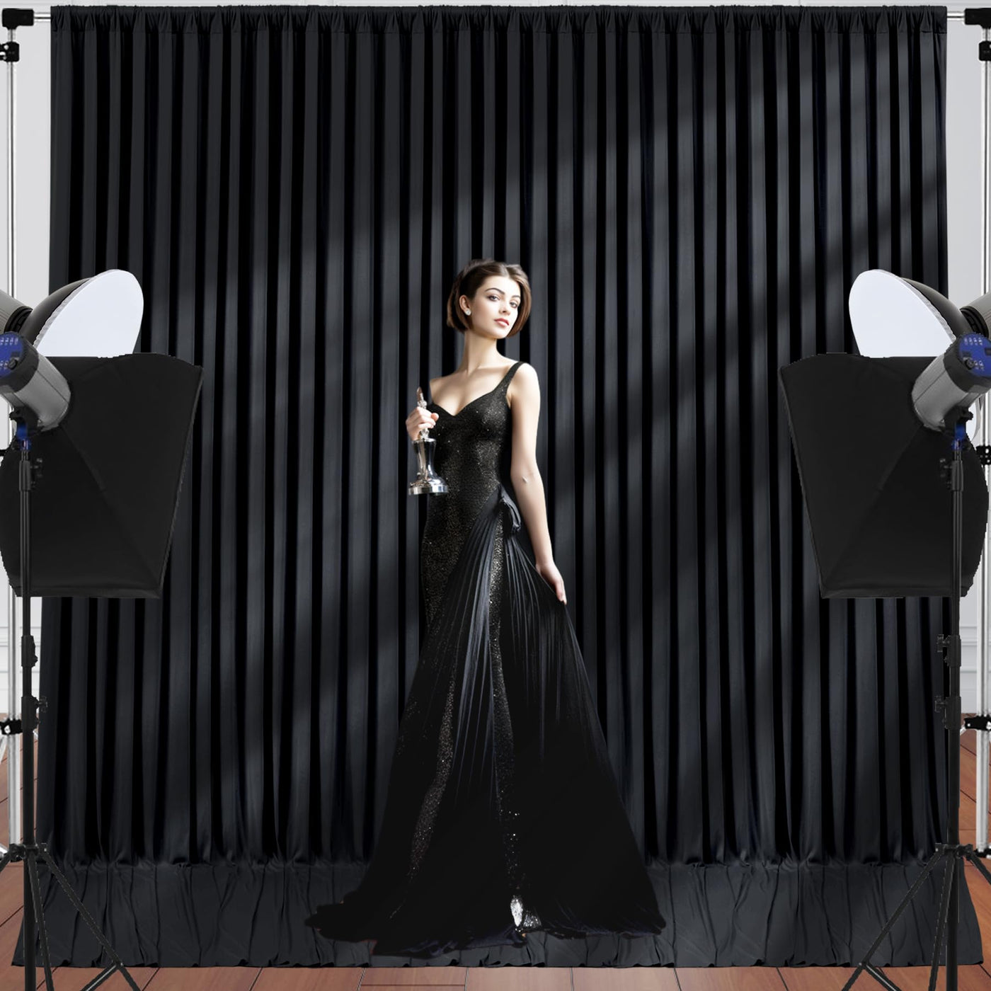 Includes: 4 Panels Soft Wrinkle Free Party Backdrop Drapes, Each Panel Backdrop Size Is 5Ft (W) And 10Ft (H), It Would Work Well In Anywhere You Want An Elegant Touch. | Material: Pure Silky Fabric Black Backdrop Curtains Panels. The Black Wedding Backdrop Is Wrinkle Free And Soft, Smooth Stretchy Fabric That Falls On The Floor In A Flowing Manner. | Easy To Use: Elegant Black Photo Backdrop Curtains Has 7.8 Inches Perimeter Rod Pocket Across The Top Edge That Can Be Used To Hang Pipes And Backdrop Drapes Stand. | Occasion: Black Wedding Curtains Backdrop Is Suitable For Wedding, Baby Shower, Birthday Parties, Gender Reveal, Bridal Shower, Engagement, Receptions, Photo Booths, Photography Backdrop, Photoshoot, Graduation, Event Party, Ceremony, Stage Curtain, Christmas, Candy Buffet, Reception, Room Decoration, Home Decor, Chapel Backdrop Or Anywhere You Want. | Resuable: Hand Wash Or Machine Wash. This Black Curtains For Backdrop Decorations Folds Flat For Easy Storage And Preparation For The Next Party. It