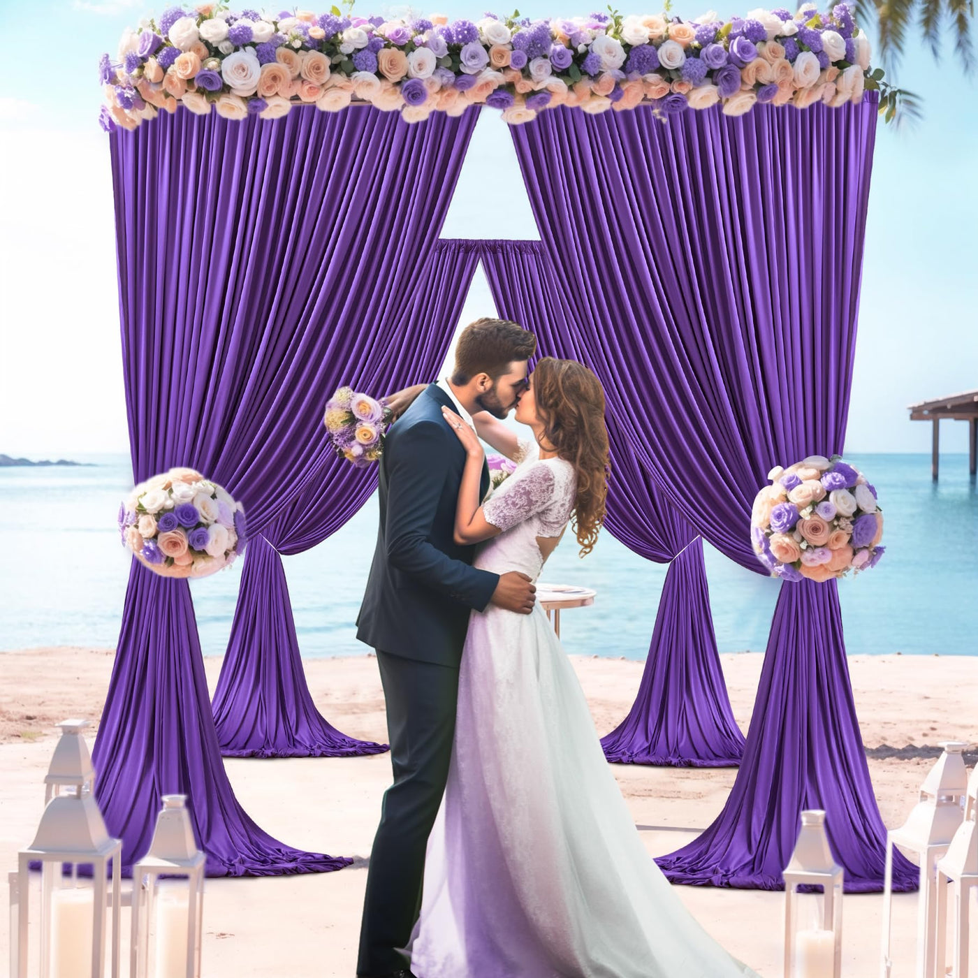 4 Panels Purple Backdrop Curtain For Parties Wedding Wrinkle Free Purple Photo Curtains Backdrop Drapes Fabric Decoration For Bi