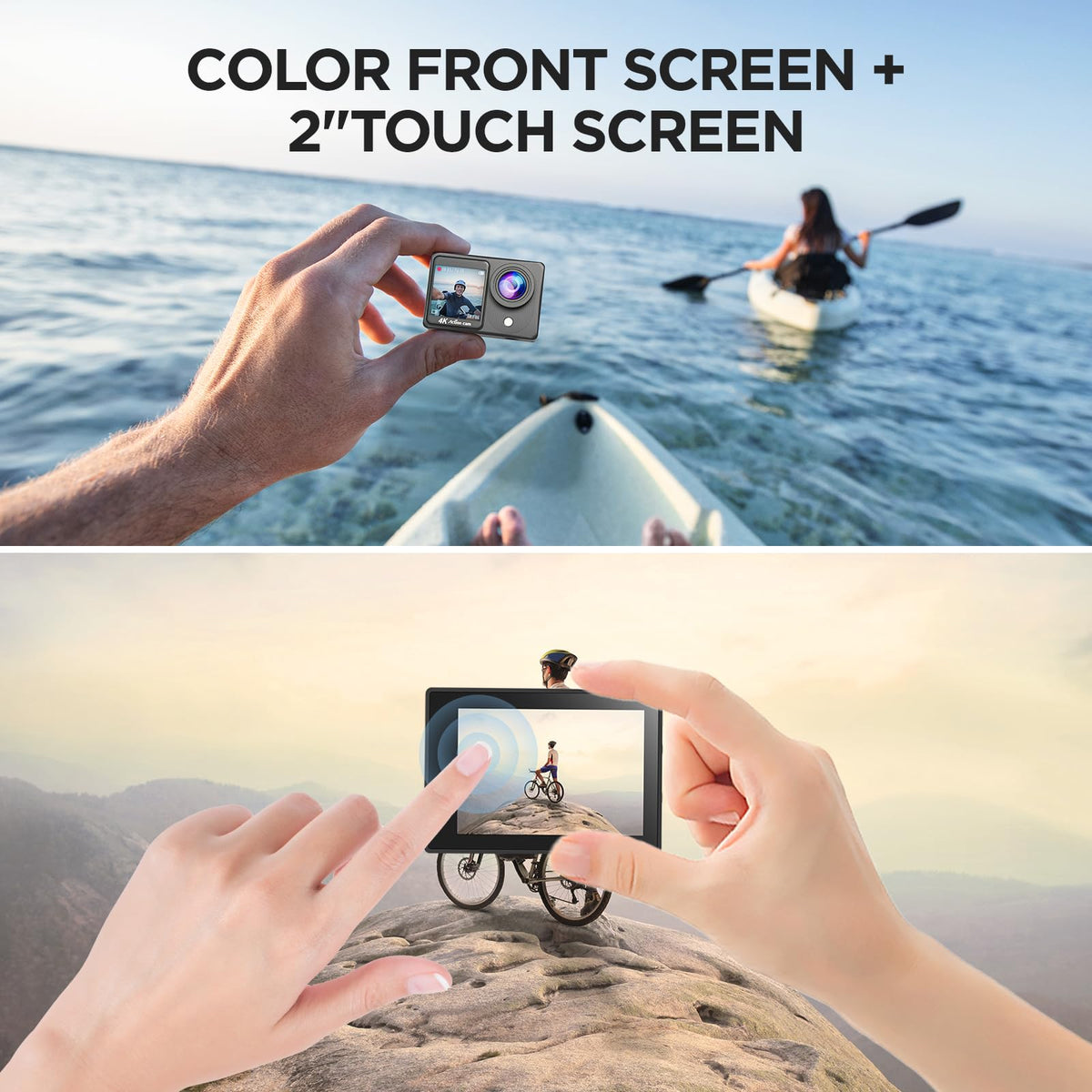 4K30Fps Dual Screen Action Camera, Pre Recording Hd 20Mp Touchscreen Video Camera, 131Ft Waterproof Cameras,2.4G Remote Control