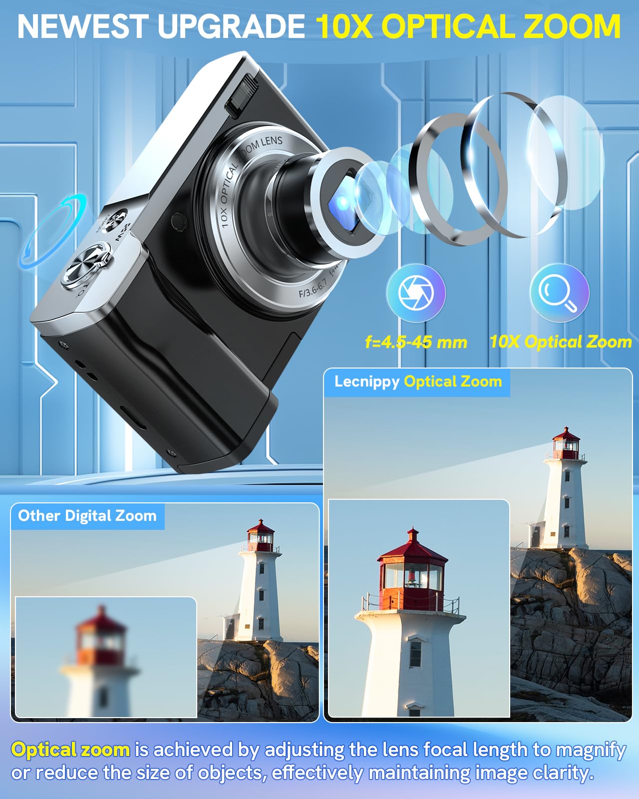 5K Digital Camera 2024 Newest 56Mp Cameras For Photography Autofocus,10X Optical Zoom Vlogging Compact Camera With Front And Rea
