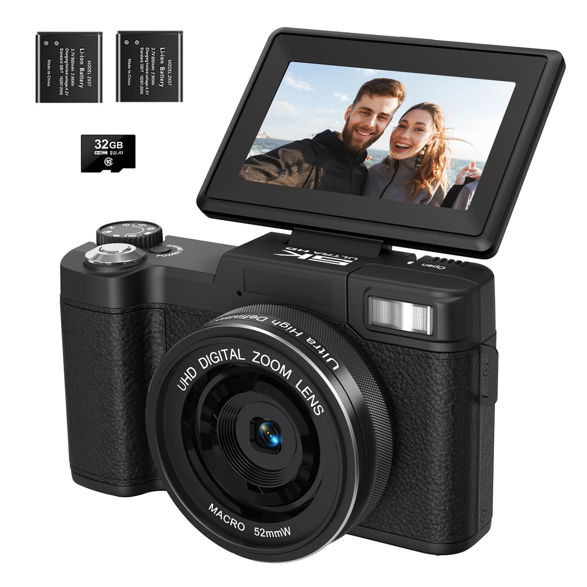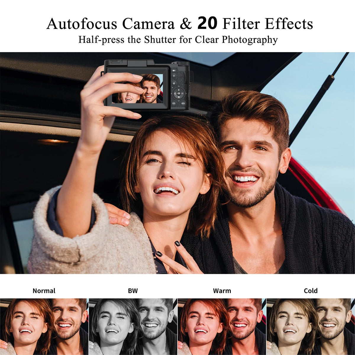 5K Digital Camera For Photography 64Mp Auto Focus Vlogging Camera For Youtube 3'' 180? Flip Screen Compact Travel 18X Digital Zo