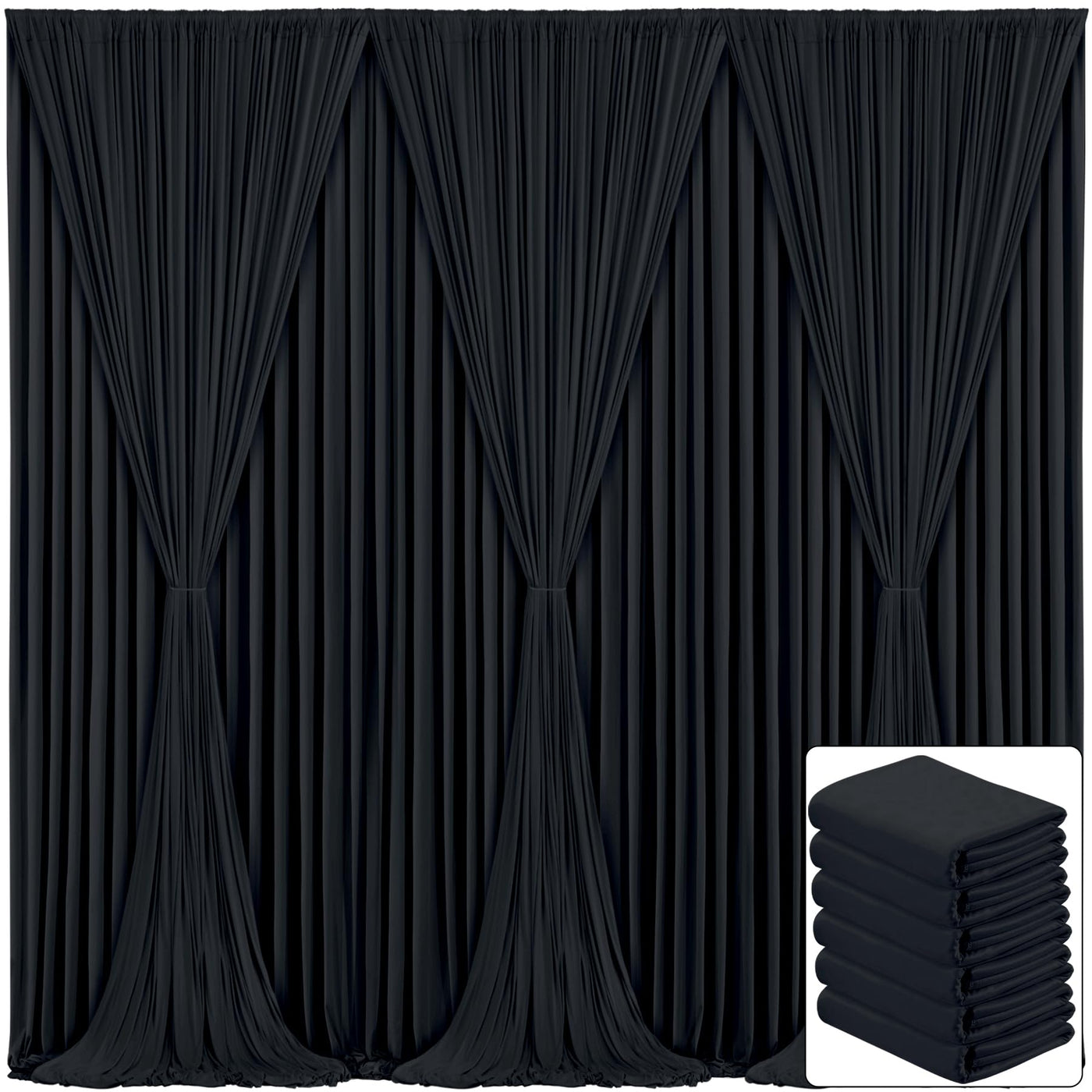 Includes: 6 Panels Soft Wrinkle Free Party Backdrop Drapes, Each Panel Backdrop Size Is 5Ft (W) And 10Ft (H), It Would Work Well In Anywhere You Want An Elegant Touch. | Material: Pure Silky Fabric Black Backdrop Curtains Panels. The Black Wedding Backdrop Is Wrinkle Free And Soft, Smooth Stretchy Fabric That Falls On The Floor In A Flowing Manner. | Easy To Use: Elegant Black Photo Backdrop Curtains Has 7.8 Inches Perimeter Rod Pocket Across The Top Edge That Can Be Used To Hang Pipes And Backdrop Drapes Stand. | Occasion: Black Wedding Curtains Backdrop Is Suitable For Wedding, Baby Shower, Birthday Parties, Gender Reveal, Bridal Shower, Engagement, Receptions, Photo Booths, Photography Backdrop, Photoshoot, Graduation, Event Party, Ceremony, Stage Curtain, Christmas, Candy Buffet, Reception, Room Decoration, Home Decor, Chapel Backdrop Or Anywhere You Want. | Resuable: Hand Wash Or Machine Wash. This Black Curtains For Backdrop Decorations Folds Flat For Easy Storage And Preparation For The Next Party. It