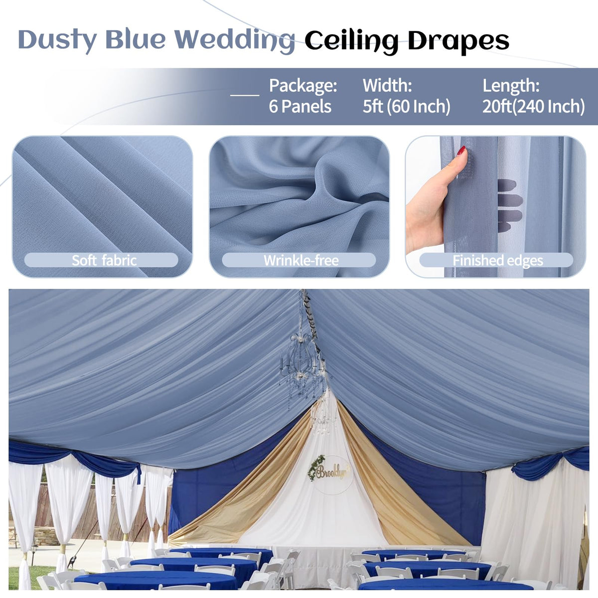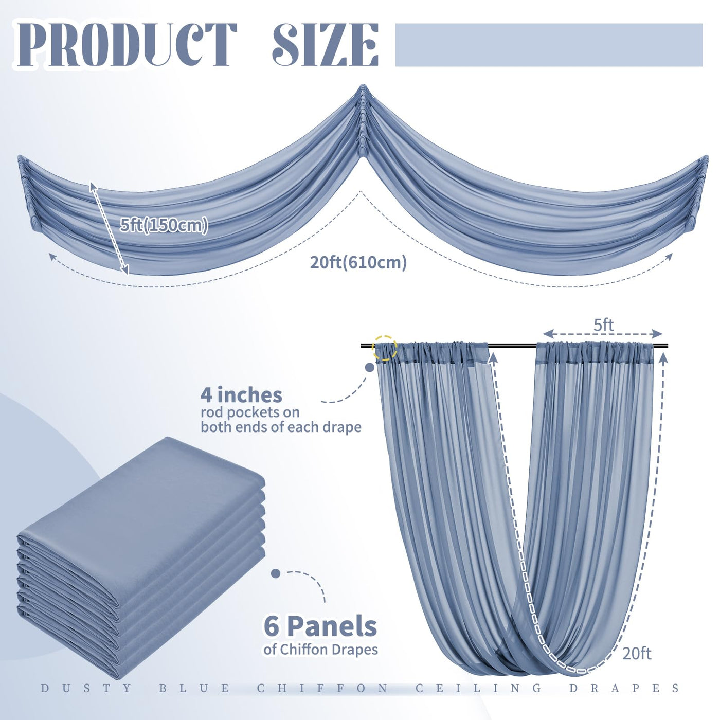 6 Panels Dusty Blue Ceiling Drapes For Wedding Ceiling Drapes 5Ftx20Ft Wedding Arch Draping Fabric Sheer Curtains Voile Chiffon