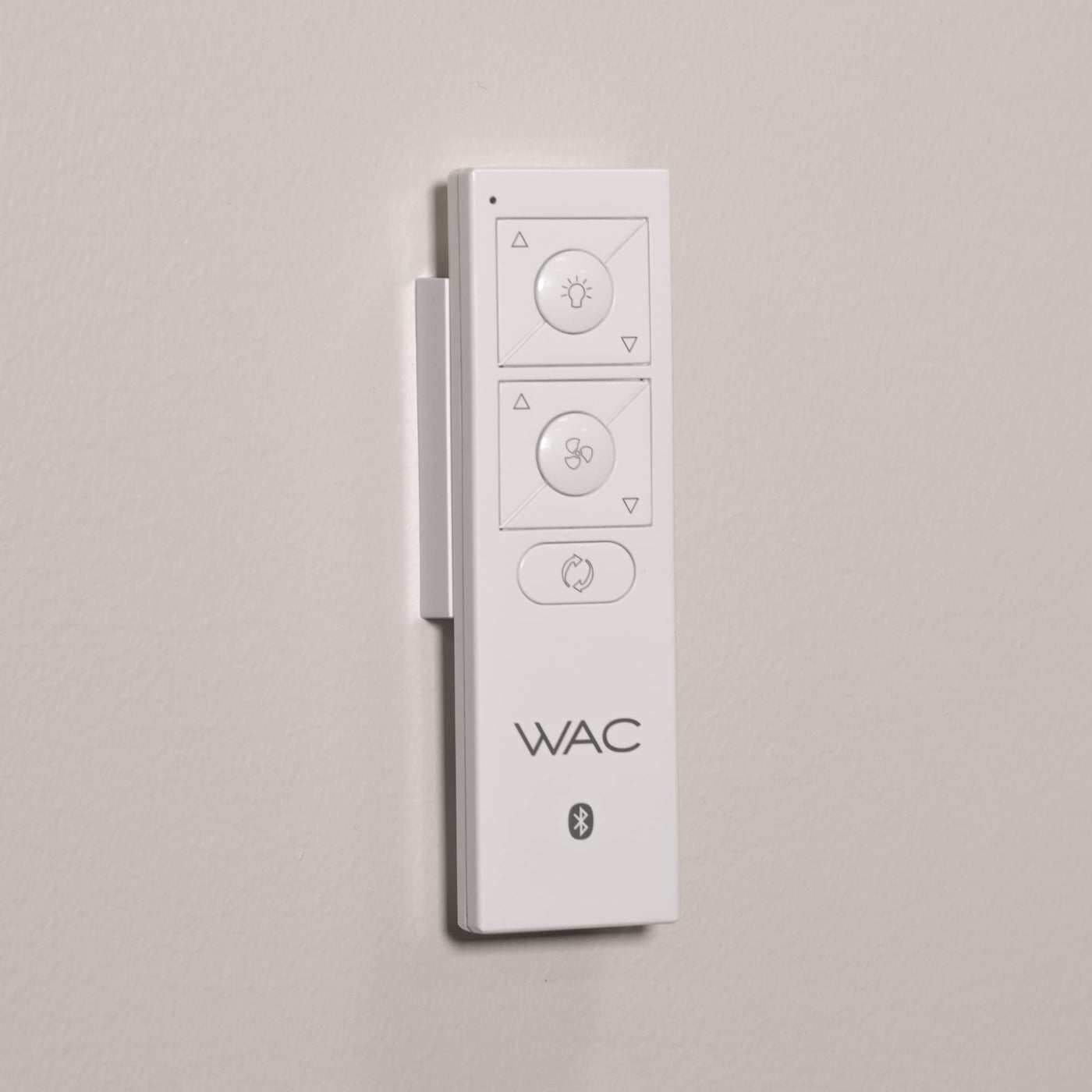 Battery Operated Bluetooth Wireless Remote For Fan Control. Wireless Remote Is Optional - Each Wac Lighting Ceiling Fan Can Be Controlled Through The Paid Wac Lighting App Available In The Google Play Or App Store. Battery Operated (Cr 2032 Battery Included), Lasts Up To 5-Years With Normal Use. Luminaire On/Off Control And 0-100% Brightness Control With Fan On/Off Button And 6 Speed Fan Control. Includes Winter/Summer Mode Switch To Reverse Fan For Warm Or Cool Air Flow. Includes A Magnetic Cradle With Easy Installation For Wall Mounting.