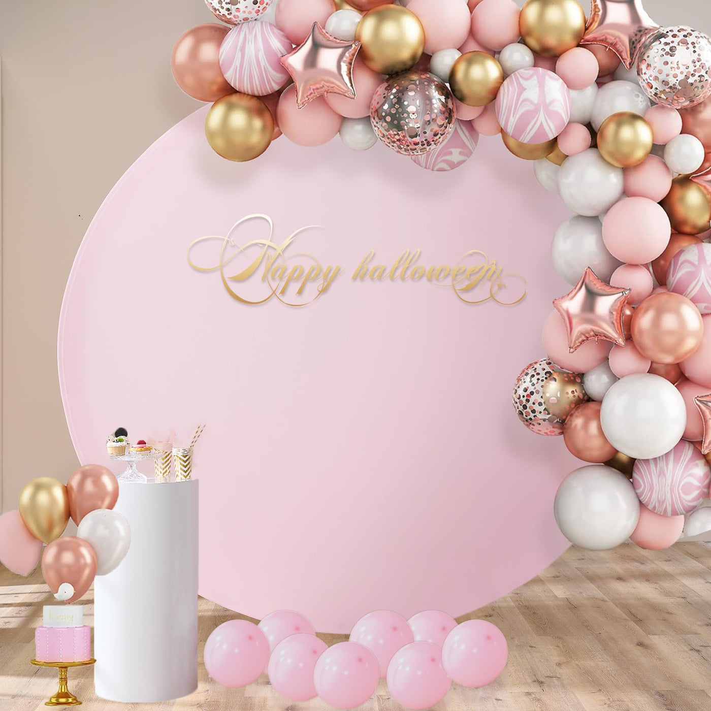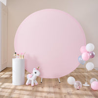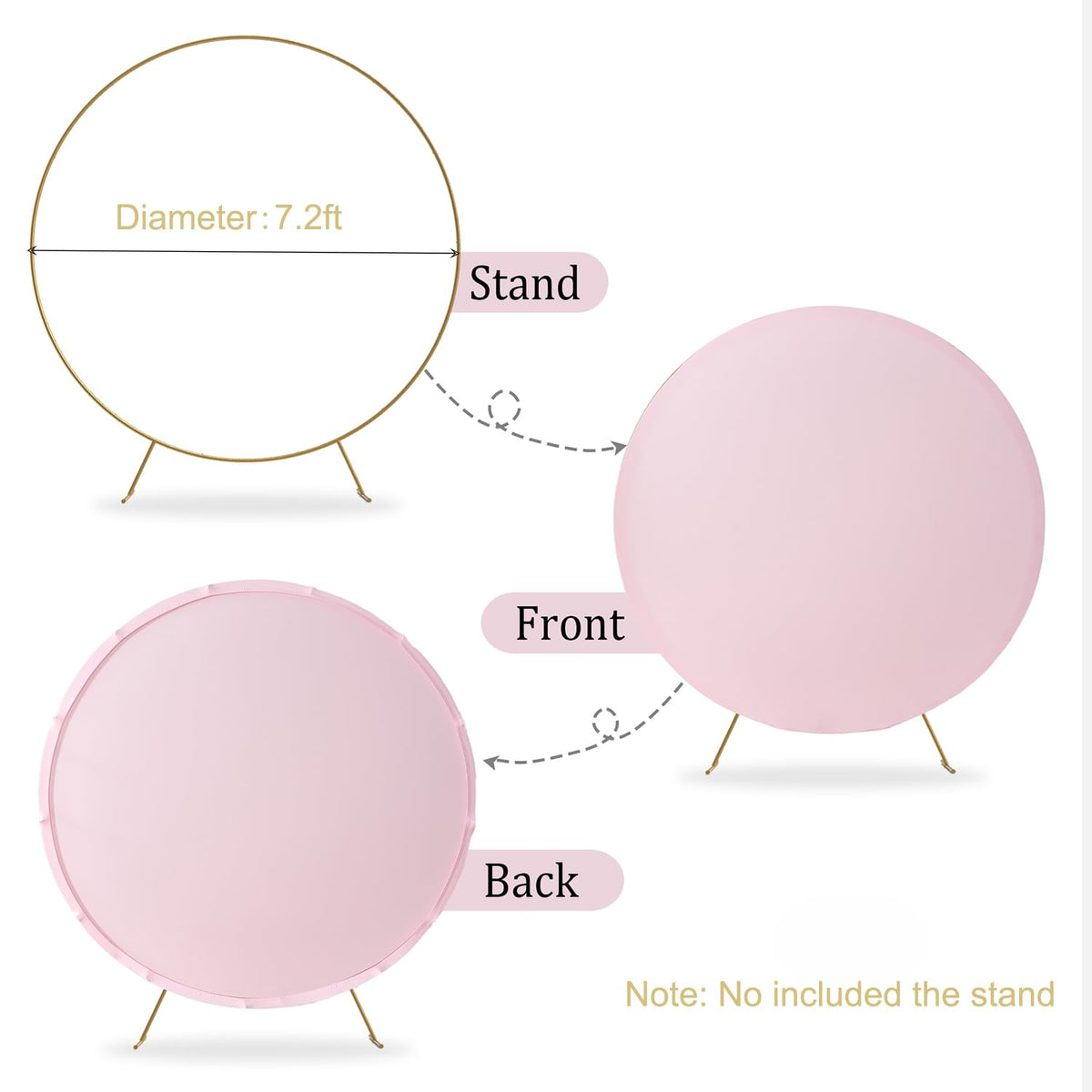 7.2Ft Baby Pink Round Backdrop Cover For 7Ft / 7.2Ft Circle Stand, Wrinkle Free Stretchy Circle Arch Round Backdrop Cover For Pa
