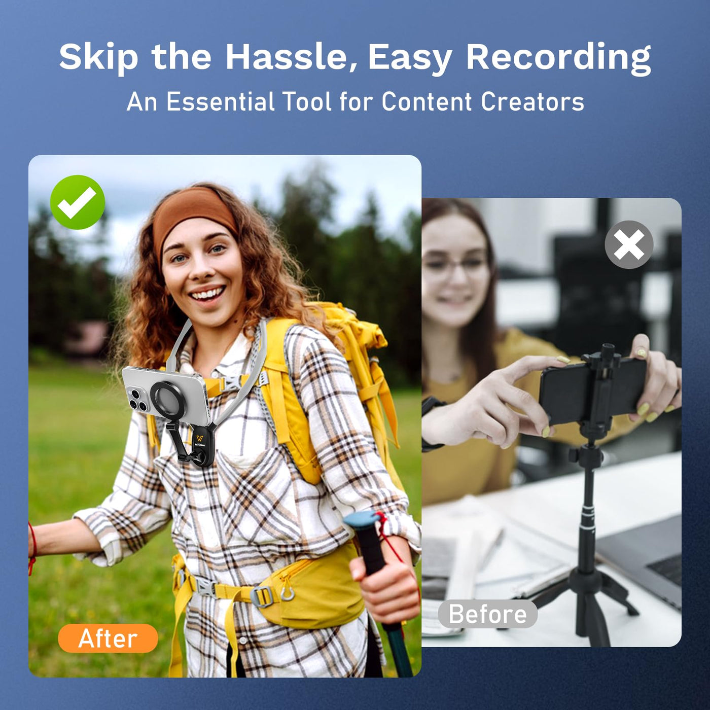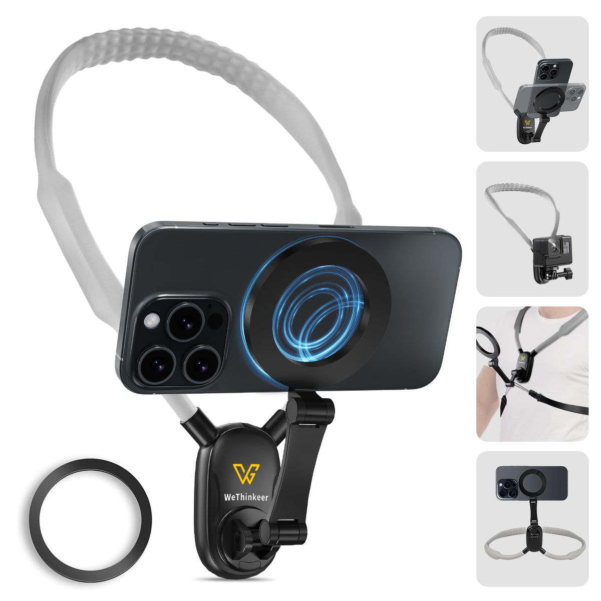 Neck Phone Holder For Recording, 700Mm Extended For Comfort, Hands-Free Pov/Vlog Magnetic Neck Mount With Anti-Shake Chest Strap, Content Creator Essential, Compatible With Iphone, Android, Gopro