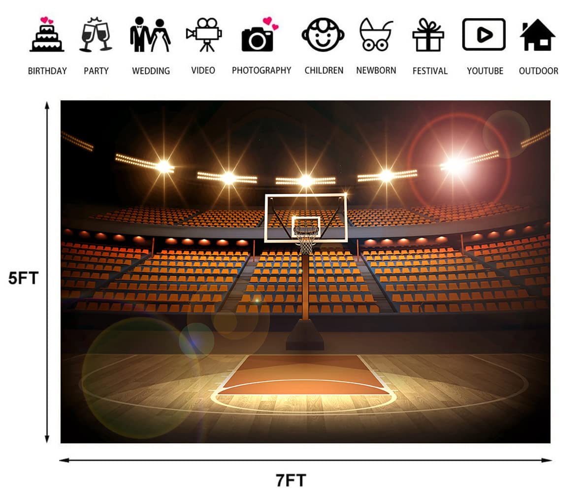 Welcome To Our Store!!! What You See Is The Basketball Photography Backgrounds, Which Are Carefully Prepared By Our Shop. Size: The Size Is 7X5Ft (210X150Cm), Which Is Suitable For Most People And Scenes. Materials: It Is Made Of High-Quality Vinyl Materials, Using Computer Printing Technology, Clear In Patterns And Bright In Colors. You Can Use This Background In Many Occasions: Themed Parties Festivals Live Broadcasts Evening Parties Graduations Anniversaries Of Important Events Grand Events Celebrations Dinners Family Parties Baby Showers Celebrate The Newborns Girls' Parties Wedding Decorations Bride Showers Interior Decorations Outdoor Shootings Product Display Backgrounds Take Photos In The Studio Artwork Photography Country Parties Outdoor Shootings Take Photos School Activities Wallpapers And So On. Packaging: Due To The Large Size Of The Product, We Fold The Item In A Package For Transportation, Which May Cause Creases. You Can Refer To The Following Methods To Remove Creases: 1. Roll The Background On A Round Tube, The Diameter Of Which Should Be More Than 10Cm, And Then Place It For 3-4 Days. The Crease Will Disappear When It Is Opened. 2. Use A Steam Iron To Iron The Back Of The Background Cloth At A Low Temperature. Warm Reminder: 1. The Background Cannot Be Cleaned Directly, But Can Be Wiped With A Wet Towel To Keep The Background Clean. 2.When You Take Pictures, Keep A Proper Distance, The Effect Will Be Better. Customer Services: If You Have Any Problems During Your Purchase And Usage, Please Feel Free To Contact Us At Any Time. We Will Solve The Issues For You As Soon As Possible And Give You A Satisfactory Shopping Experience.