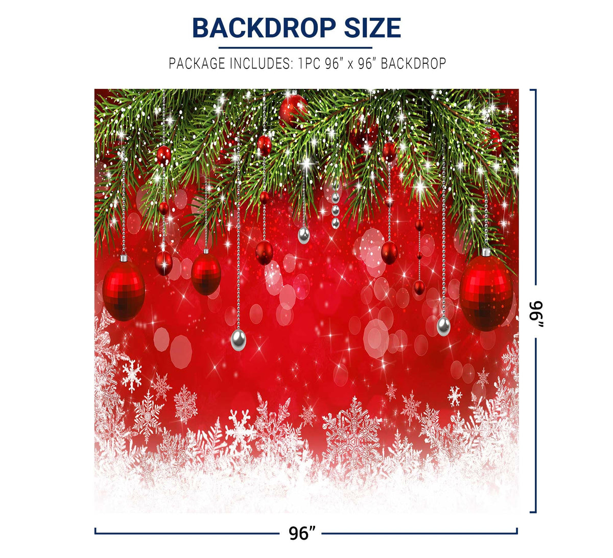 Allenjoy 8X8Ft Fabric Snowflake Christmas Backdrop For Winter New Year Photography Family Party Birthday Supplies Glitter Bokeh Sparkle Red Merry Background Baby Shower Decorations Photo Booth Props