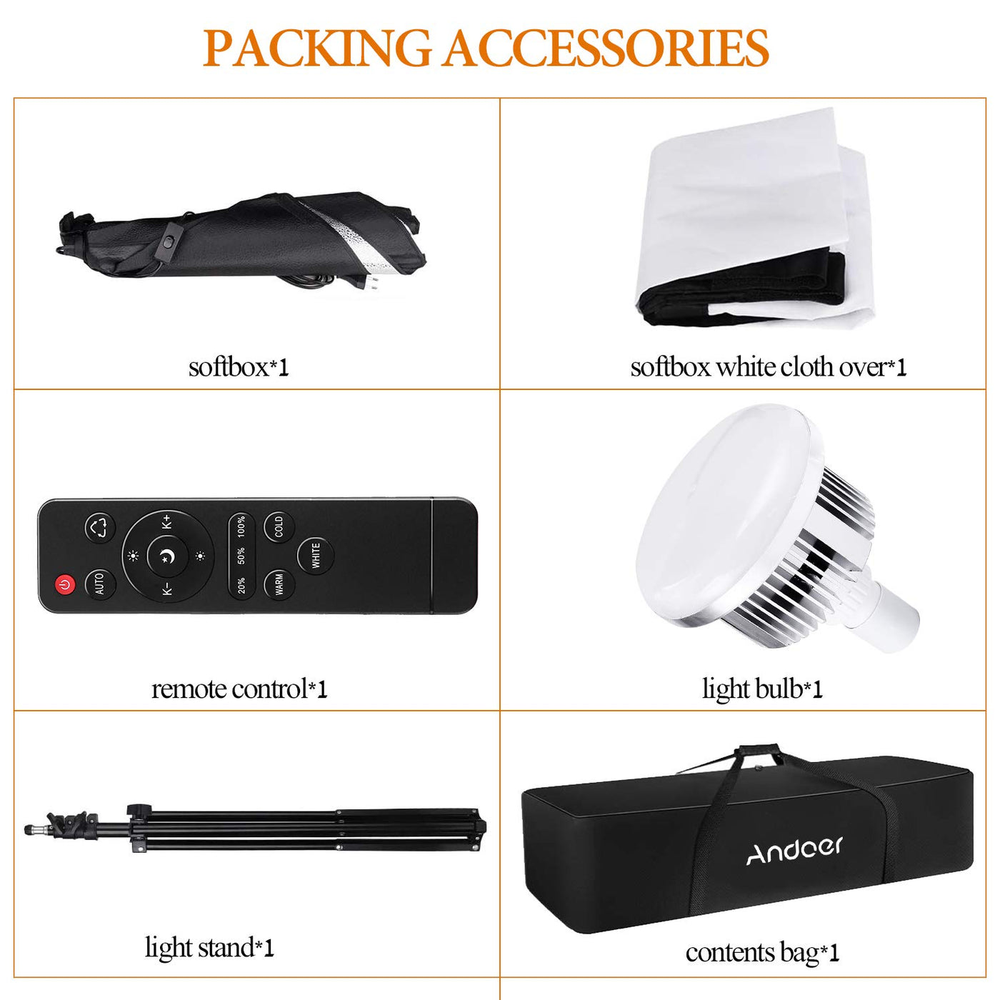 Andoer Softbox Photography Lighting Kit Studio Light, Bi Color Dimmable 85W Soft Box Studio Output Lighting, With 3 Color Temper