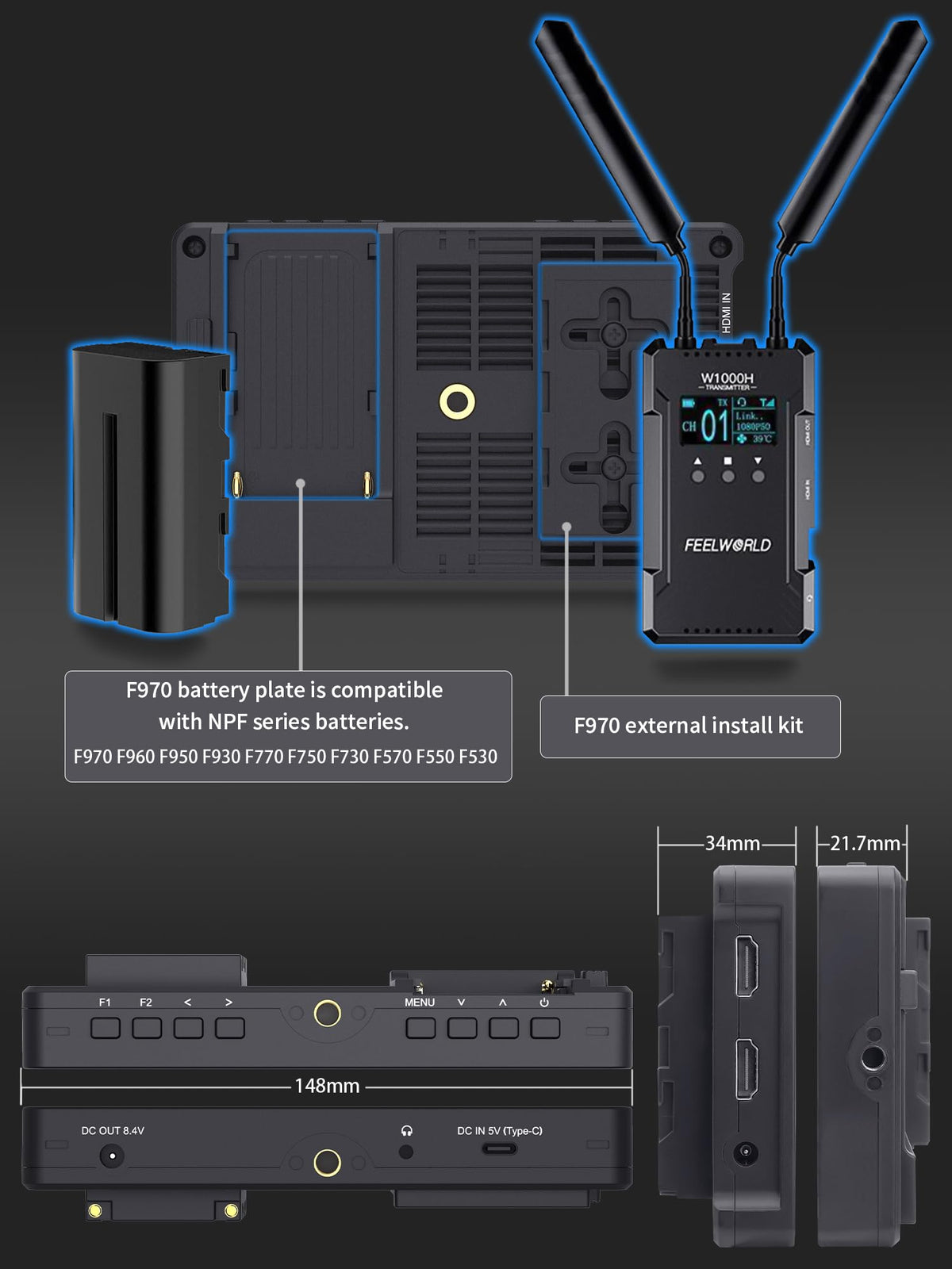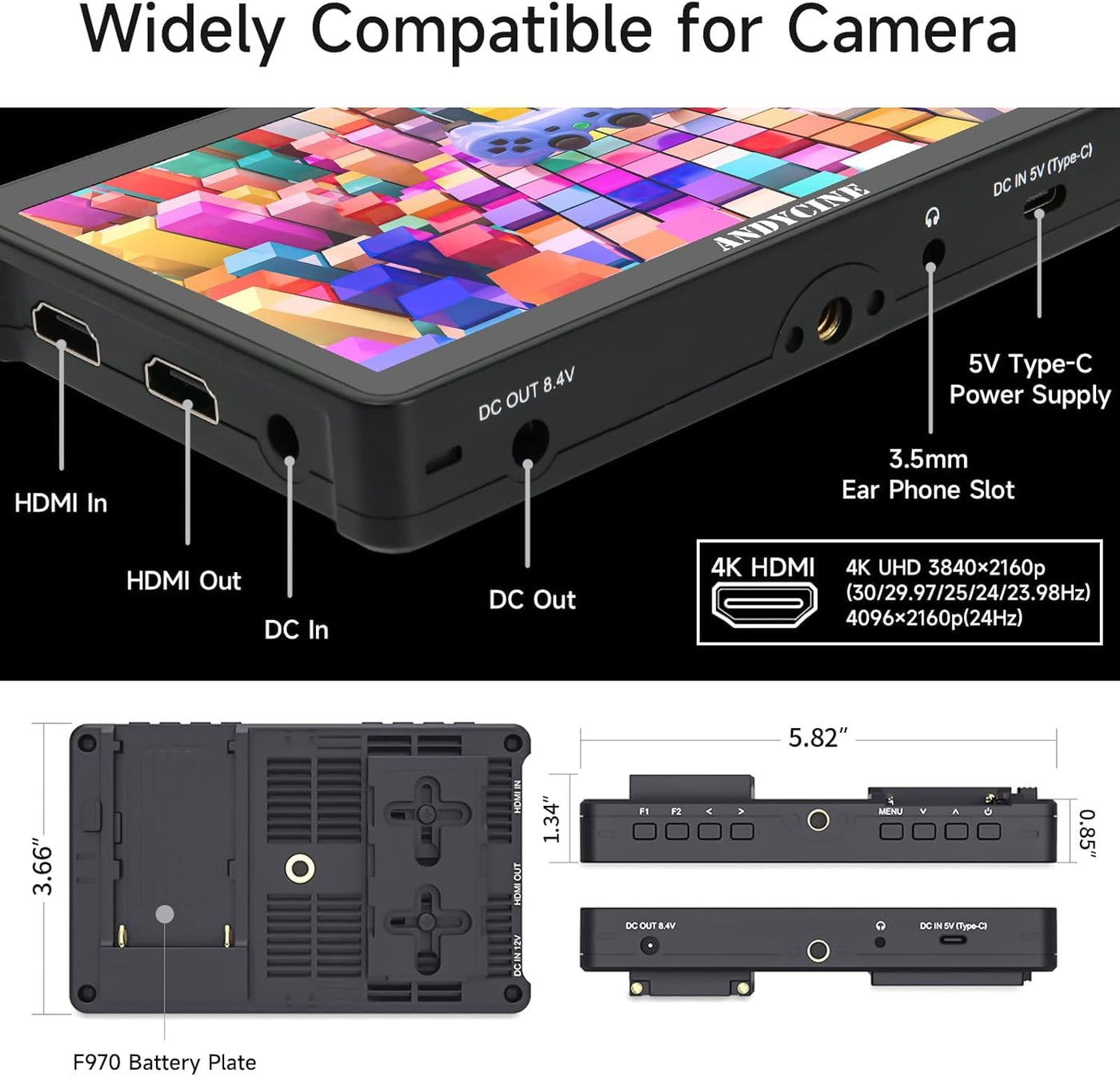 Andycine A6 Max 6 Inch Touch Screen Camera Hdmi Field Monitor Bundle + Battery+Carry Case+ Micro Cords With 3D Lut 1080P 4K Hdmi With Externalf970 Power Plate Bundle
