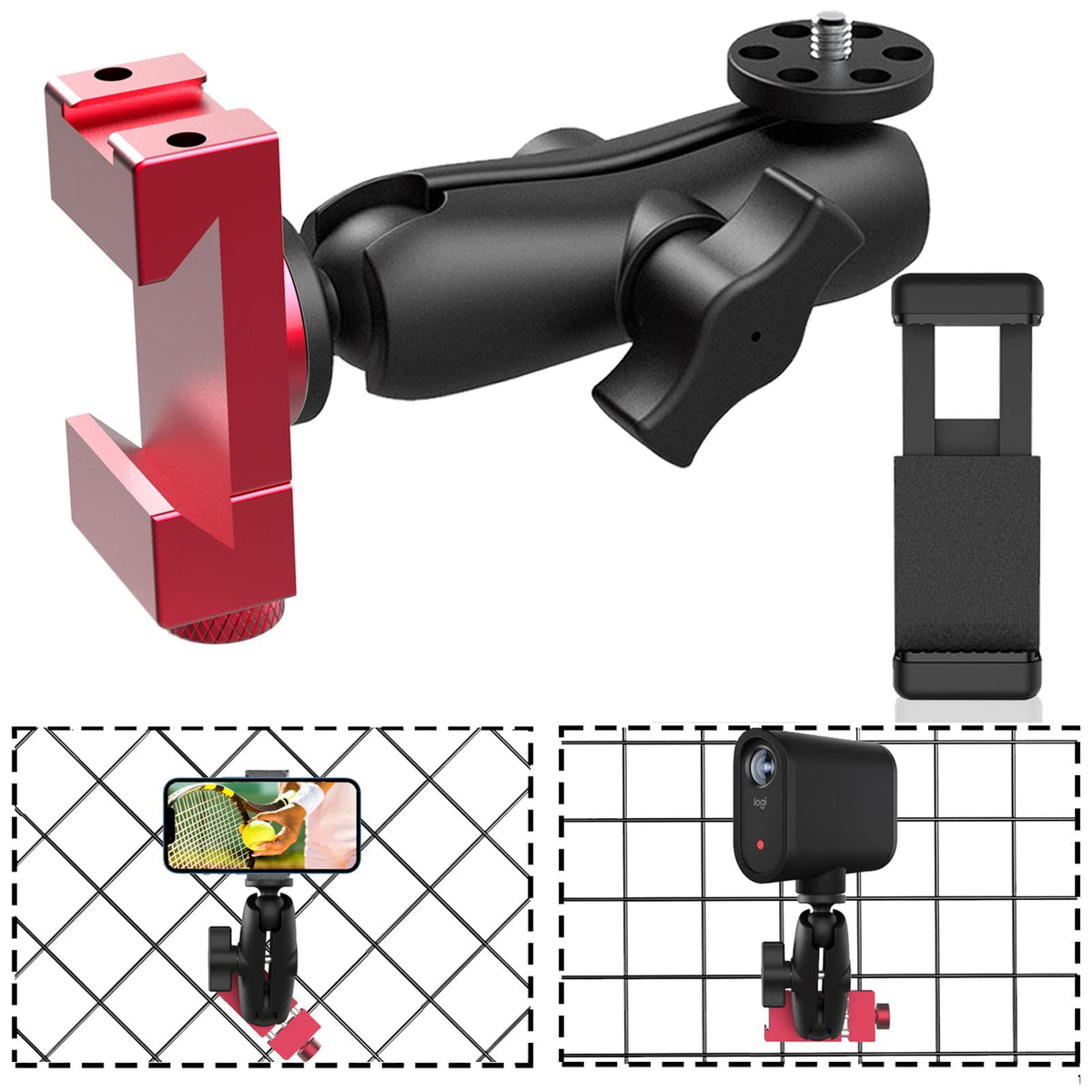 Professional Tennis Equipment : Perfect For Clipping Onto The Metal Fence Of The Pitch, This Reliable Mobile Phone Fence Holder Will Not Come Off Even When Hit By A Ball. Allowing You To Capture Every Moment On The Pitch. Adjustable Phone Holder : Our Cell Phone Fence Mount Are Retractable And Adjustable From: [65 Mm-115 Mm] And Can Fit Most Smartphones. Its Flexibility And Versatility Ensure That You Never Have To Worry About Missing A Shot Or Recording A Point From An Incorrect Angle. It'S Perfect For Men And Women Who Want To Improve Their Tennis And Pickleball Skills And Take Their Training To The Next Level With 360 Degree Swivel Angle : Fence Mount For Mevo Start Easy 360 Degree Adjustment. With 1 T-Bar And 1/4-20 Fittings At The Bottom And Top. Adjustability Knob Allows You To Capture Every Winning Moment From The Perfect Angle. Never Worry About Missing A Moment Again With 360 Degree Swivel Angle : Fence Mount For Mevo Start Easy 360 Degree Adjustment. With 1 T-Bar And 1/4-20 Fittings At The Bottom