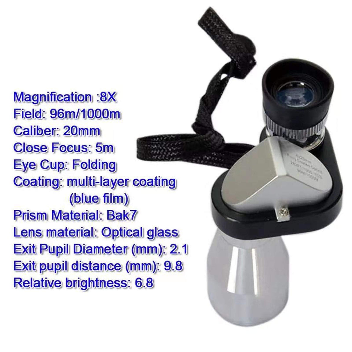 Feature: &Nbsp; &Nbsp; &Nbsp; &Nbsp; &Nbsp; Sturdy Frame Made Of High Quality Aluminum Alloy + Rubber, Transparent Crystal, Mini Monocular, Flexible Miniature Telescope Waterproof And Impact Resistant &Nbsp; &Nbsp; &Nbsp; &Nbsp; &Nbsp; Scale: 8 Times &Nbsp; &Nbsp;&Nbsp; &Nbsp; &Nbsp; &Nbsp; &Nbsp; &Nbsp; Object Diameter: 20Mm &Nbsp; &Nbsp; &Nbsp; &Nbsp; &Nbsp; Field Of View]: 5.5 Degrees &Nbsp; &Nbsp; &Nbsp; &Nbsp; &Nbsp; Kilometer Horizon: 96M/1000M &Nbsp; &Nbsp; &Nbsp; &Nbsp; &Nbsp; Exit Pupil Diameter: 2.5Mm &Nbsp; &Nbsp; &Nbsp; &Nbsp; &Nbsp; Exit Pupil Distance: 10.3Mm &Nbsp; &Nbsp; &Nbsp; &Nbsp; &Nbsp; Final Focal Length: 5M &Nbsp; &Nbsp; &Nbsp; &Nbsp; &Nbsp; Size: Length 75X Diameter 24Mm Thickness 36Mm &Nbsp; &Nbsp; &Nbsp; &Nbsp; &Nbsp;Prism System: Pole Prism System. &Nbsp; &Nbsp; &Nbsp; &Nbsp; &Nbsp;Lens: Optical Lens. &Nbsp; &Nbsp; &Nbsp; &Nbsp; Optical Coating: Fmc Full Broadband Green Film. &Nbsp; &Nbsp; &Nbsp; &Nbsp; Eye Mask Type: Cover Eye Mask, Suitable For Myopia And Non-Myopia. &Nbsp; &Nbsp; &Nbsp; &Nbsp; Function: Nitrogen-Filled Waterproof Purpose: &Nbsp; &Nbsp; &Nbsp; &Nbsp; &Nbsp; &Nbsp; &Nbsp; &Nbsp; &Nbsp; Suitable For All Kinds Of People, Adults, Children And Outdoor Sports Enthusiasts. Perfect For Climbing, Hiking, Driving, Racing, Concerts, Travel, Wildlife Viewing, Bird Watching, Sightseeing, Hunting, Fishing, And More. Low Vision Magnifying Glass With Outdoor Activity And Sports Hood Equipment: &Nbsp; &Nbsp; &Nbsp; &Nbsp; &Nbsp; &Nbsp; &Nbsp; &Nbsp; &Nbsp; &Nbsp; 1X Binoculars-1X Smartphone Holder-1X Flannel Bag-1X Cleaning Cloth-1X Strap-1X User Description After-Sales Service: 24-Hour Online Service.