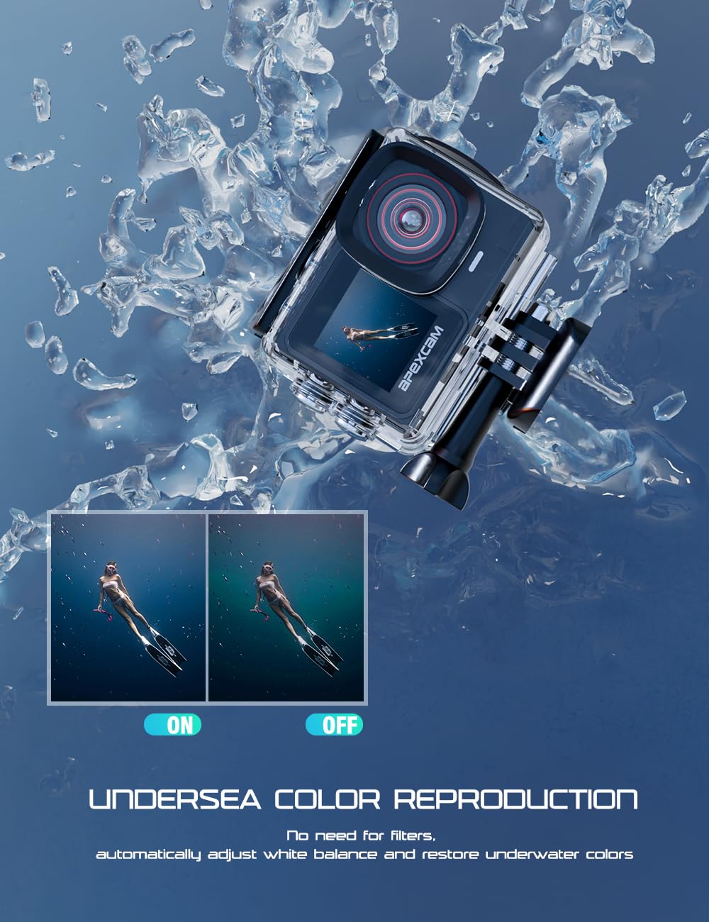 Apexcam Action Camera 4K/60Fps With 64Gb Sd Card,131Ft Waterproof Underwater Camera 48Mp Sports Camera Wifi Touch Screen Helmet Camera With External Mic, Remote Control,Mounting Accessories Kit