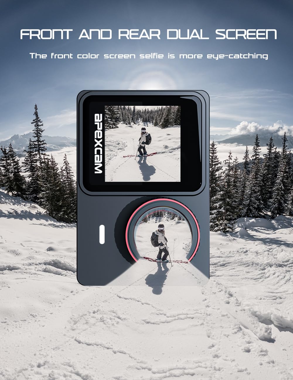 Q: What video quality can the Apexcam Action Camera capture?A: The Apexcam Action Camera captures stunning 4K video at 60 frames per second, allowing you to record high-quality footage of your adventures.