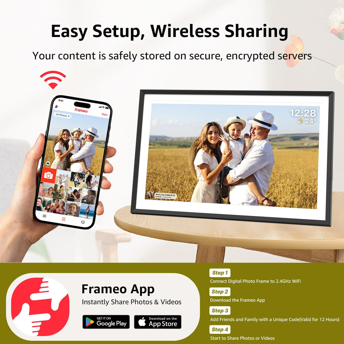 Presenting The Apolosign Digital Photo Frame - A Wonderful Gift For Your Loved Ones That Adds An Immersive And Delightful Touch To Displaying And Enjoying Cherished Moments. Whether It'S For A Parent, Friend, Or As A Stylish Addition To Home Decor, This Versatile Frame Can Even Serve As A Tool For Advertising Products Or Showcasing Work. It'S The Perfect Gift For Various Occasions Such As Family Reunions, Mother'S Day, Father'S Day, Anniversaries, Birthdays, Christmas, Thanksgiving, And More. Boasting Exceptional Display Quality, The Frameo Digital Frame Wifi 15.6 Inch Features A High-Quality Hd 1920*1080 Resolution (16:9 Aspect Ratio) Ips Touch Screen. Witness Photos And Videos Come To Life With Remarkable Clarity, Vivid Colors, And Sharp Details. Whether It'S A Scenic Landscape, A Candid Family Moment, Or A Snapshot Of Your Latest Adventure, This Digital Frame Preserves The Essence Of Each Image With Impressive Fidelity. Experience The Convenience Of A Wifi Smart Picture Frame By Connecting It To Your Wifi Network And Downloading The Free Frameo App On Your Phone. Safely And Privately Share Photos Or Videos With Family From Anywhere And Anytime. With Built-In 32Gb Memory And Support For Sd Cards (Up To 32Gb, Not Included), You Can Read, Export, And Back Up Received Photos And Videos For Efficient Album Management. The Auto-Rotate Feature Allows The Digital Frame To Adjust The Direction Of Photos, Enabling Placement In Either Portrait Or Landscape Mode Or On The Wall. The Dynamic Slideshow Feature Breathes Life Into Still Images, Enhancing The Overall Viewing Experience. Setting Up The Apolosign Wifi Digital Picture Frame Is Fast And Easy, Making It User-Friendly For Individuals Of All Ages. The Intuitive Interface Ensures That Even Those Less Tech-Savvy Can Navigate Through Settings, Customize Preferences, And Manage Displayed Photos Without Any Hassle. This Accessibility Makes It An Excellent Gift Choice For People Of All Generations, From Grandparents To Youngsters. Capture And Share Moments Effortlessly With The Apolosign Digital Photo Frame.
