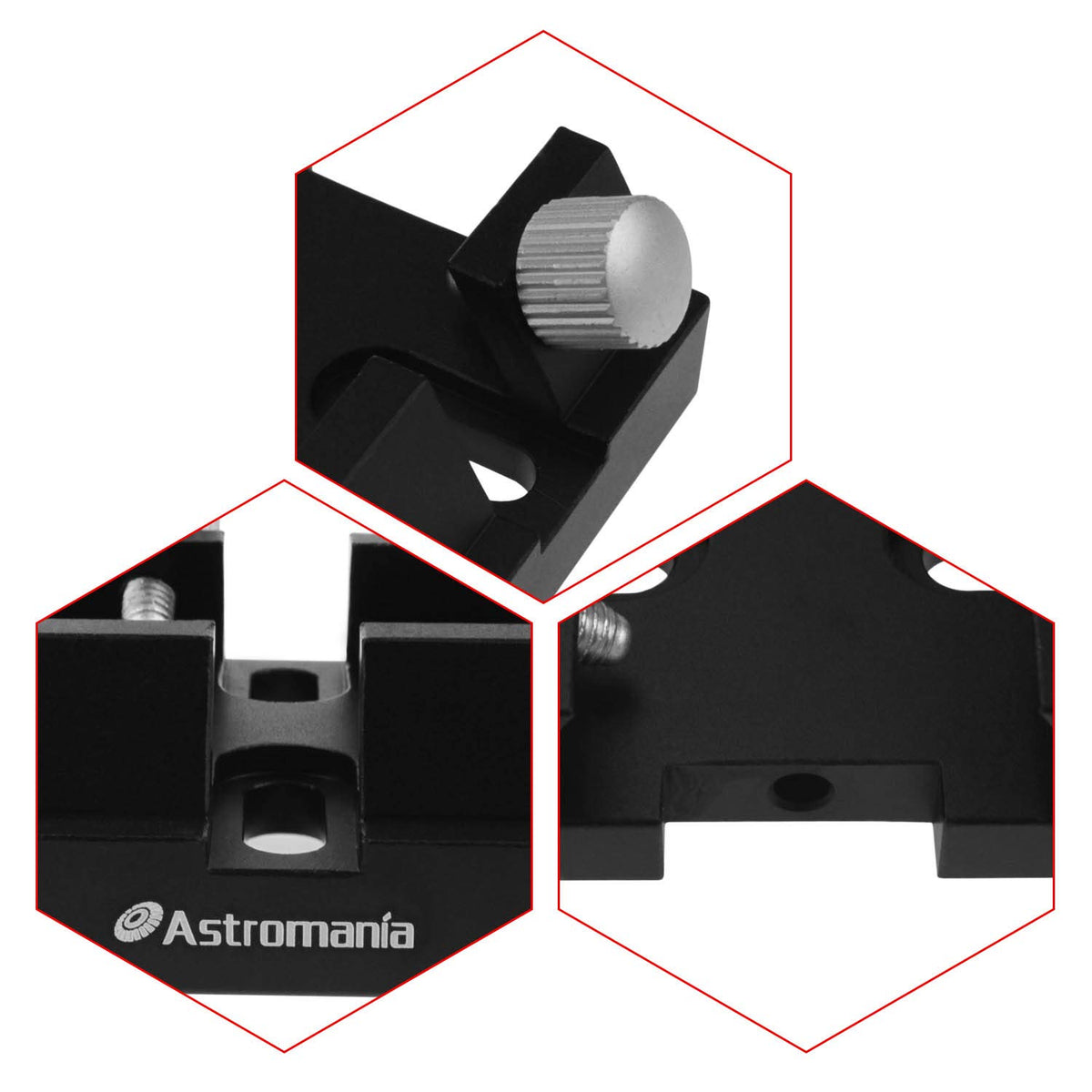 Astromania Schmidt-Cassegrain Finder Scope Base Fits Factory Drilled Holes On Celestron, Meade, And Orion Schmidt-Cassegrain Telescopes, Attaches Directly To Schmidt-Cassegrain Telescope (Sct) Optical Tube With Included Mounting Hardware. Allows You To Attach Any Standard Finder Scope, Laser Pointer Bracket Or Reflex Sight Bracket To Schmidt-Cassegrain Telescopes (Sct) Up To 11 Inch Aperture, Great For Second Or Third Aiming Device To Your Schmidt-Cassegrain For Multiple Aiming Options. Made Of High Strength Aluminum With Anodizing Aluminium Process. The Base Is Made Of Die-Cast Metal And Features One Large Thumbscrew Locks. Includes Two M4 Screws. Synta-Style Dovetail Base -- Fit Most Bracket Designs From Celestron, Orion, Sky-Watcher, Vixen, Etc. Compliable With Finder Scope, Laser Pointer Bracket On Telescopes. The Clamp In The Bottom Of Dovetail Base Is Fit Standard Vixen Dovetail Bar. Drilled (But Not Threaded) To Accommodate Screws Up To 4Mm In Diameter. Center-To-Center Screw Hole Spacing On Your Telescope Must Be From 21 To 37.3Mm In Order For This Dovetail Base To Be Compatible.