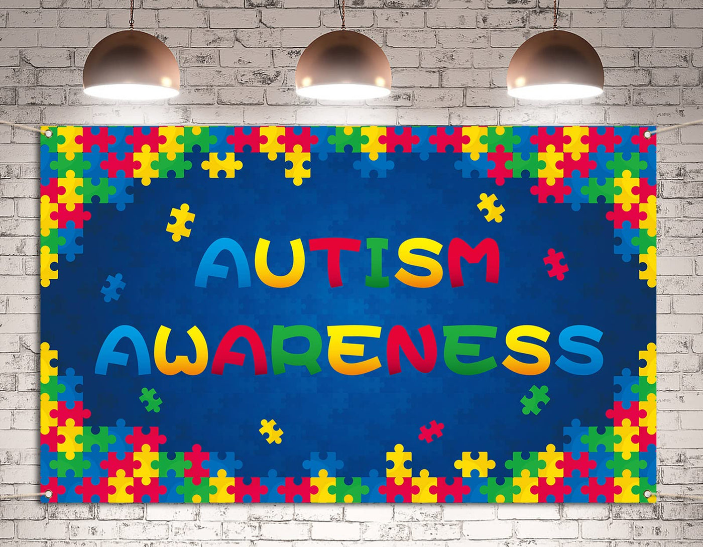 Autism Awareness Backdrop Banner April Puzzle Piece Support Party Photography Background Wall Hanging Decoration