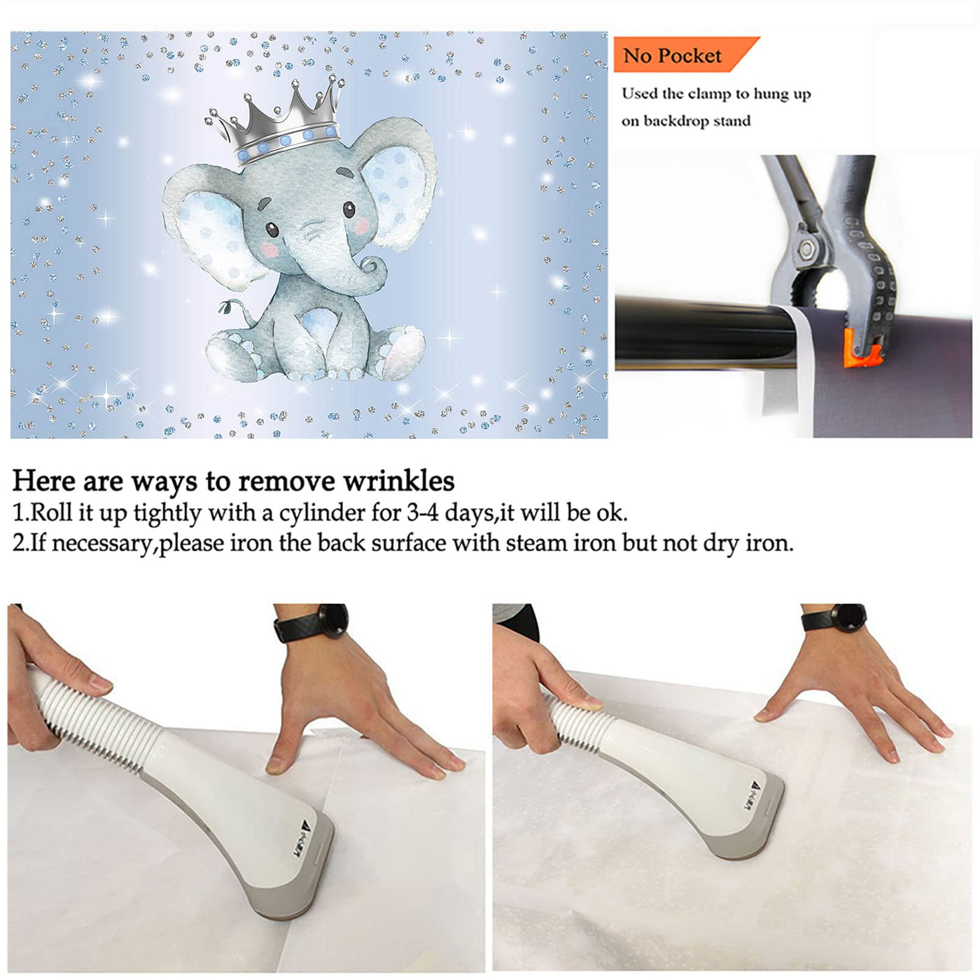 Q: How do I care for the backdrop after use?A: You can wash the backdrop in a washing machine for easy cleaning. After washing, it can be hung to air dry or you can use a steam iron to remove any wrinkles before your next event.