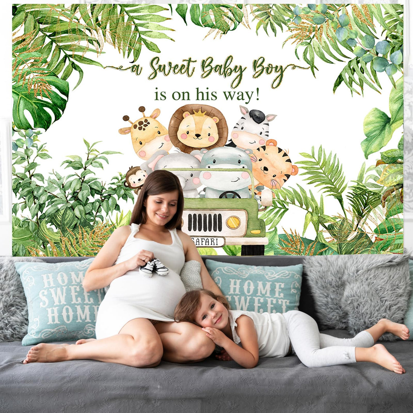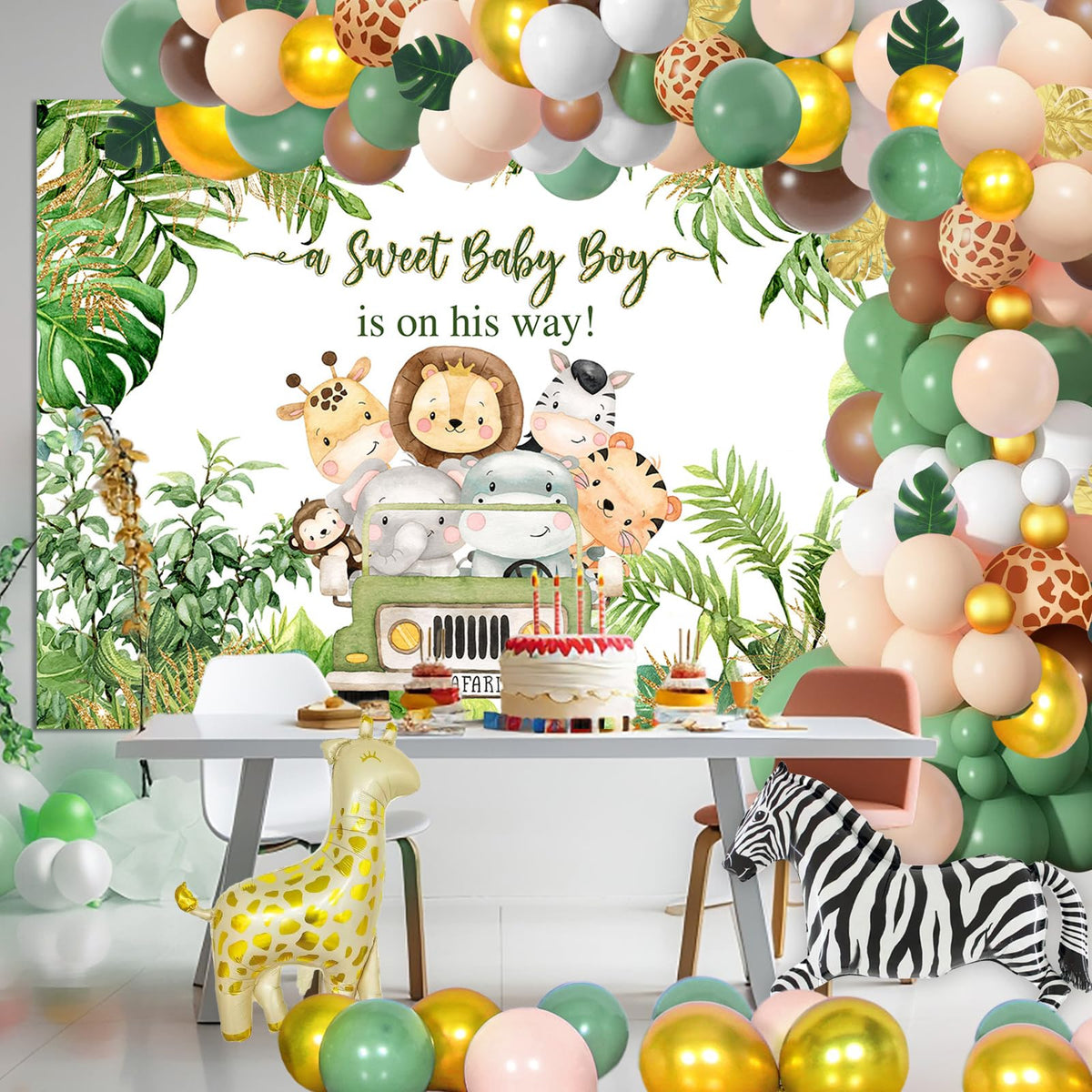 Avezano Jungle Safari Baby Shower Backdrop Safari Animals Boy Baby Shower Party Background Decorations Tropical Green Leaves Saf