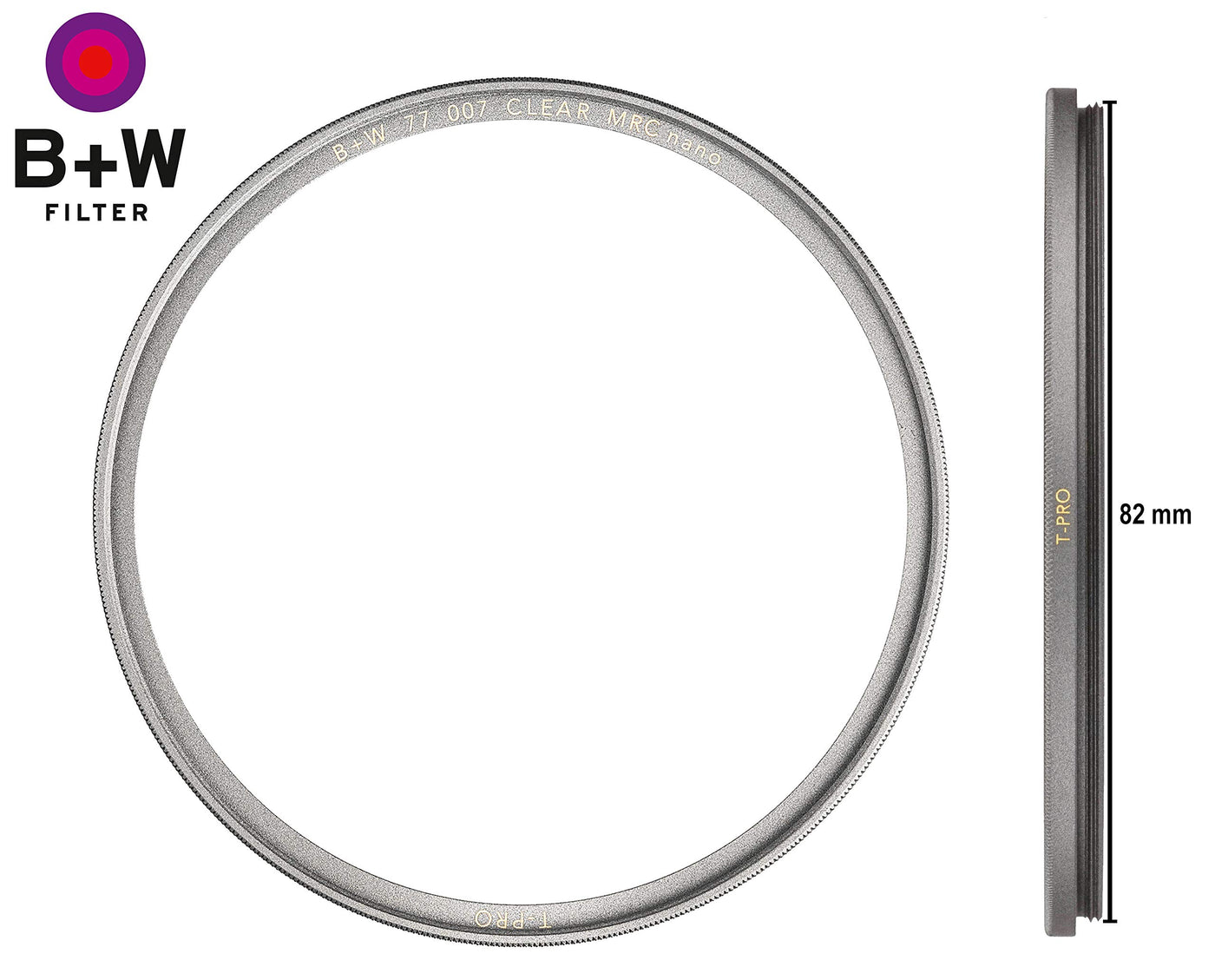 B+W T Pro 007M Clear Protection Filter, 82Mm, Titanium, 16 Layers Multi Resistant And Nano Coating