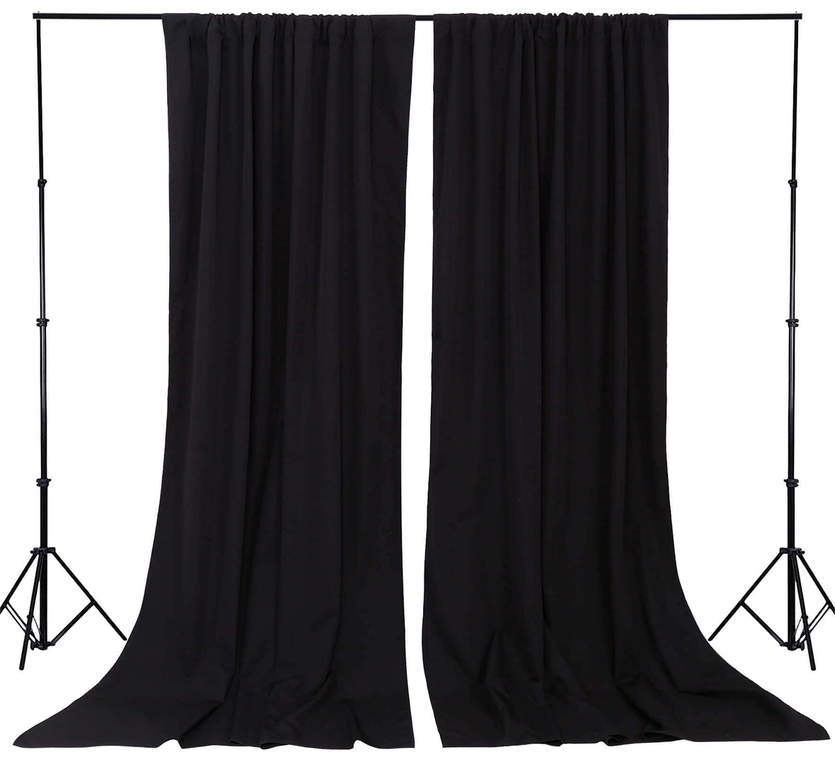 Black Background Drapes: Each Order Is For 2 Panels Polyester Curtains. Each Curtain Measures 5 Feet Wide X 8 Feet High. Entire Measures 10Feet Wide X 8Feet High. With 4Inch Rod Pocket Design. | Polyester Material: Wedding Polyester Backdrop Is Made Of Polyester Material. Polyester Fabric Is Stain & Wrinkle Resistance. Non-Reflective, Lightweight, Small Volume, Easy To Fold And Carry. Completely Seamless, Providing You With Higher Quality Shooting Results. | Lock-Stitching & Washable: The Polyester Drapes Is With Good Lock-Stitching Along All Edges To Prevent Tears. Single Layer, Unlined. Can Be Cleaned In A Washing Machine For Daily Cleaning. | Sutiable For Scenarios: This Background Screen Is Suitable For Party, Weddings Decorations, Photography Decor, Receptions, Catered Presentations, Bridal And Baby Showers, Birthdays, Candy Buffets, Dessert Tables And More. | Please Note: Backdrop May With Some Creases For Long Time Folding, Can Be Iron With Steam Iron Or Hang For A While. Will Make Your Wedding More Elegant And High-Grade.The Screen Panels Is Very Suitable For Novices And Veterans.