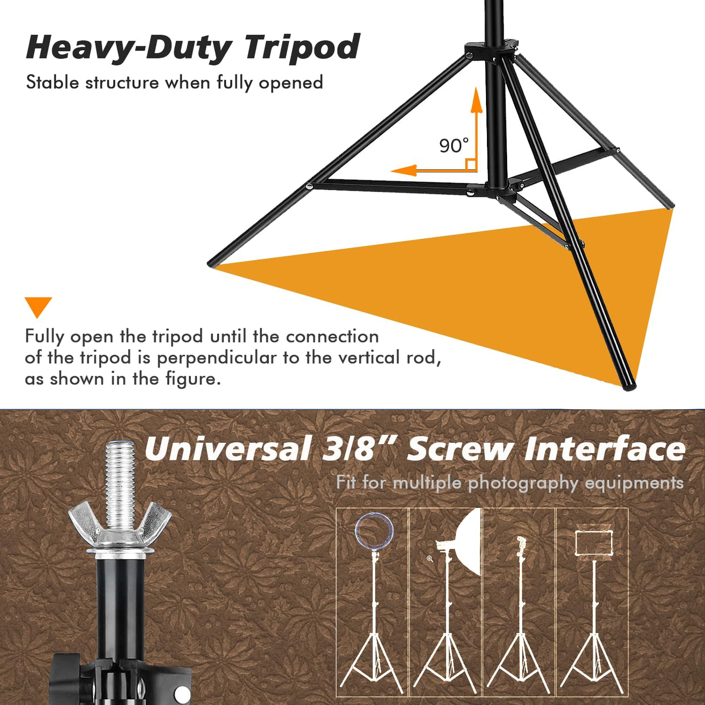 Q: Is the Backdrop Stand easy to set up and take down?A: Yes, the Backdrop Stand features an easy installation process, making it simple to set up and take down in just a few steps, whether indoors or outdoors.