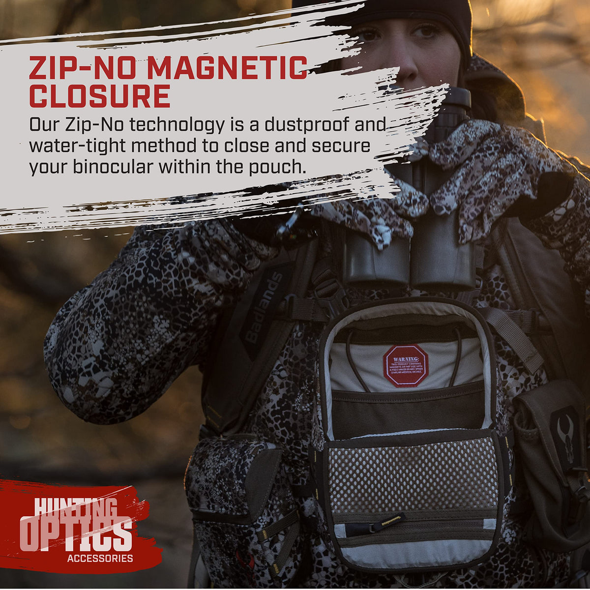 Upgraded Design - We Improved The Original Mag Bino Harness To Make The Perfect Binocular Chest Harness That Has Increased Versatility, Including Side And Bottom Accessory Attachment Points | Ergonomic, Quiet Interior Fabric - Surprise Is On Your Side With A Quiet Fabric That Lets You Scope The Area Without Disruption, Plus The Ergonomic Strap System Keeps You Comfortable When Hunting | Zip-No Magnet Closure - Zip-No Technology Is A Dustproof And Water-Tight Method To Close And Secure Your Binocular Within The Pouch � An Easy One-Handed Operation | Easily Adaptable - Functional For All Your Needs, We Included Bottom Loops For Holster Attachment, Bow Hook, Breathable Airtrack Suspension, And Bino Tether And Quick-Release Carabiner Rings | Guaranteed Quality - At Badlands, We Promise To Sweat The Small Stuff So You Sweat A Little Less. We Build Durable, Quality Gear Covered By Our Legendary Unconditional Lifetime Warranty