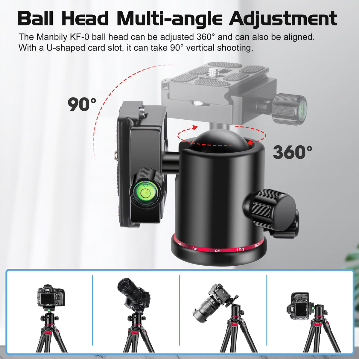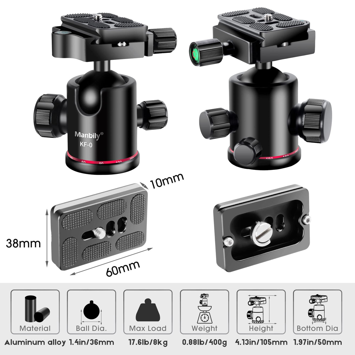 Package: The Kit Includes: (1) One Tripod Ball Head (2)One Extra Quick-Release Plate (3) Two Screw Converters (4) One Phone Clip; Note: Camera And Tripod Are Not Included | Upgrade Design: The Diameter Of The Monopod Ball Head Is 36Mm And It Can Rotate 360�.The Camera Can Be Adjusted To Different Angles With The Help Of 3 Adjustment Knobs. One Of The Knobs Has Been Upgraded From The Relative Design To The Side Design, Which Is Better For A Reflexed Tripod | Flexible Collocation: The Bottom Of The Camera Head Has A 3/8' Thread, Which Is Suitable For Most Tripods And Monopods. To Match More Equipment. The Top 60 Mm Quick-Release Plate Meets The Arca-Swiss Standard, Can Be Flexibly Matched With Cameras, Camcorders, Phones, Projectors, Thermometers, And Other Equipment | Precise Indication: The Horizontal And Vertical Bubbles Enhance The Perception Of Position Horizontally. Base With Panoramic Index Mark To Indicate More Precise Control. Helps To Take Pictures And Videos Stably | Easy Switching: U-Shaped Groove Design Can Easily Switch Between Horizontal And Vertical Shooting Modes
