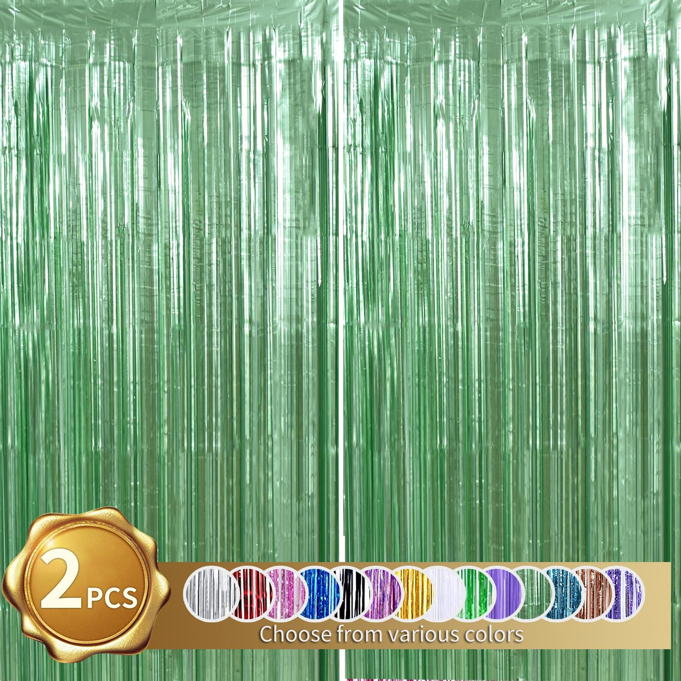 Beishida 2 Pcs Light Green Door Streamers Tinsel Curtain Party Backdrop Fringe Foil Wall Background For Birthday Halloween Chris