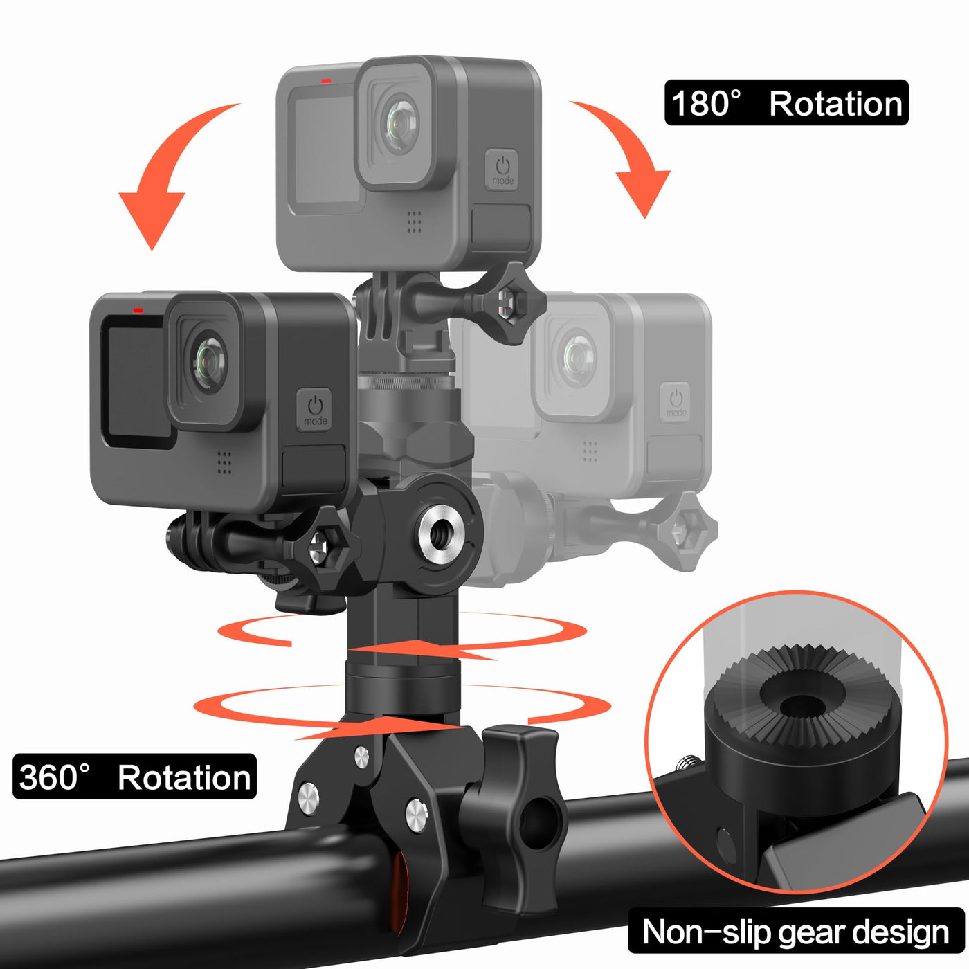 Bike Motorcycle Handlebar Mount For Insta360, Third Person Bicycle Handlebar Selfie Stick Clamp Mount With 360�Rotation Compatible With Insta360 X4 X3 X2 X One, Gopro, Perfect For Shooting Bike Video