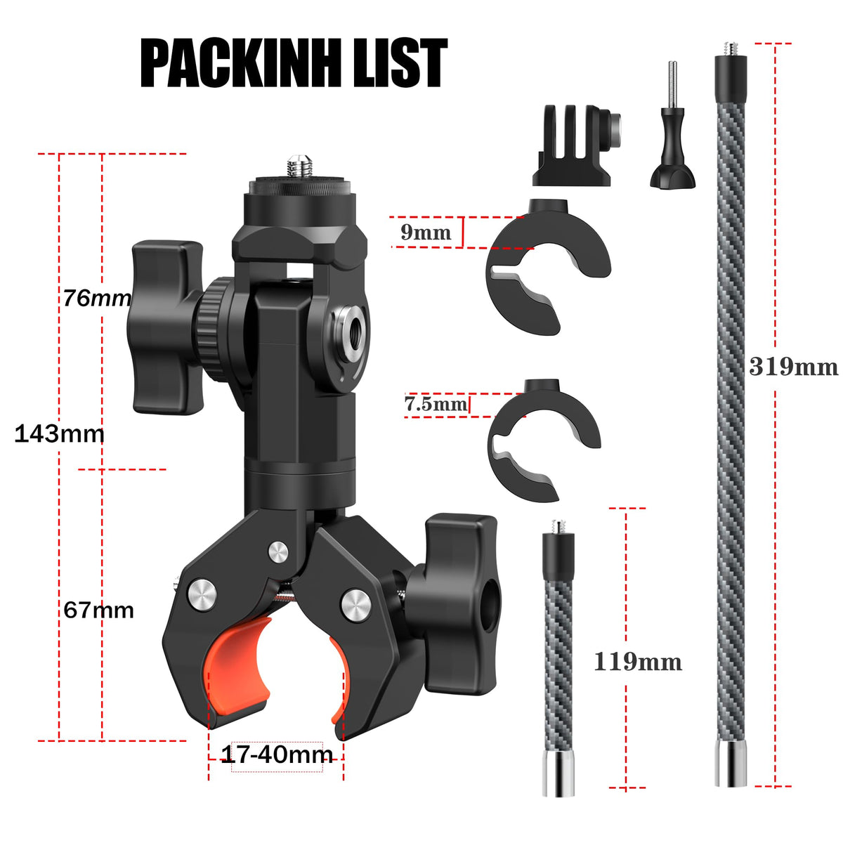 Professional Bike Motorcycle Kit : Looking For The Perfect Motorcycle Bike Selfie Stick To Capture All Of Your Adventures? Look No Further Than Koqeiey Motorcycle Bicycle Invisible Selfie Stick Kit! Our Kit Is Perfectly Compatible With Insta360 X4 X3 One X2 Rs R, Gopro11 10 9 8 7 Cameras Andmake Sure Your Video Doesn'T Shake 360� Panoramic Rotation : Our Motorcycle Handlebar Mounts For Insta360X4 With 360� Swivel Function, So You Can Adjust Them Easily. Elevate Your Photography With The Koqeiey Motorcycle Bicycle Selfie Stick, Capture Stunning Action Shots From Unique Perspectives And Start Creating Unforgettable Moments Excellent Quality & Two Lengths Size : Our Motorcycle/Bike Extension Rods Mount Is Made Nice Grade Of Carbon Fibre And Durable Nylon Fiber Composite Material. Lightweight And Sturdy. Carbon Fibre Extension Rods Are Available Inch 12 / 5 Inch (30 Cm/10 Cm) Lengths, Multiple Lengths To Suit Your Shooting Needs Easy To Install On Your Bike Handlebars : Motorcycle/Bike Mount For Insta360 X3 Allowable Diameters Are 25-35 Mm Without Rubber Gasket, 7-17 Mm With Rubber Gasket. Perfect For Mounting On Of Motorcycle Bicycle Handlebars, Seatposts, Ski Poles And More Tubes. Allowing You To Capture Unforgettable Moments During Your Rides Easy To Use : Simply Attach Your Camera To The Handlebar Holder, Adjust The Angle To Your Liking, And Start Recording. It Provides A Sturdy And Stable Platform For Your Camera, Ensuring That Your Shots Won'T Shake, Even On Bumpy Roads