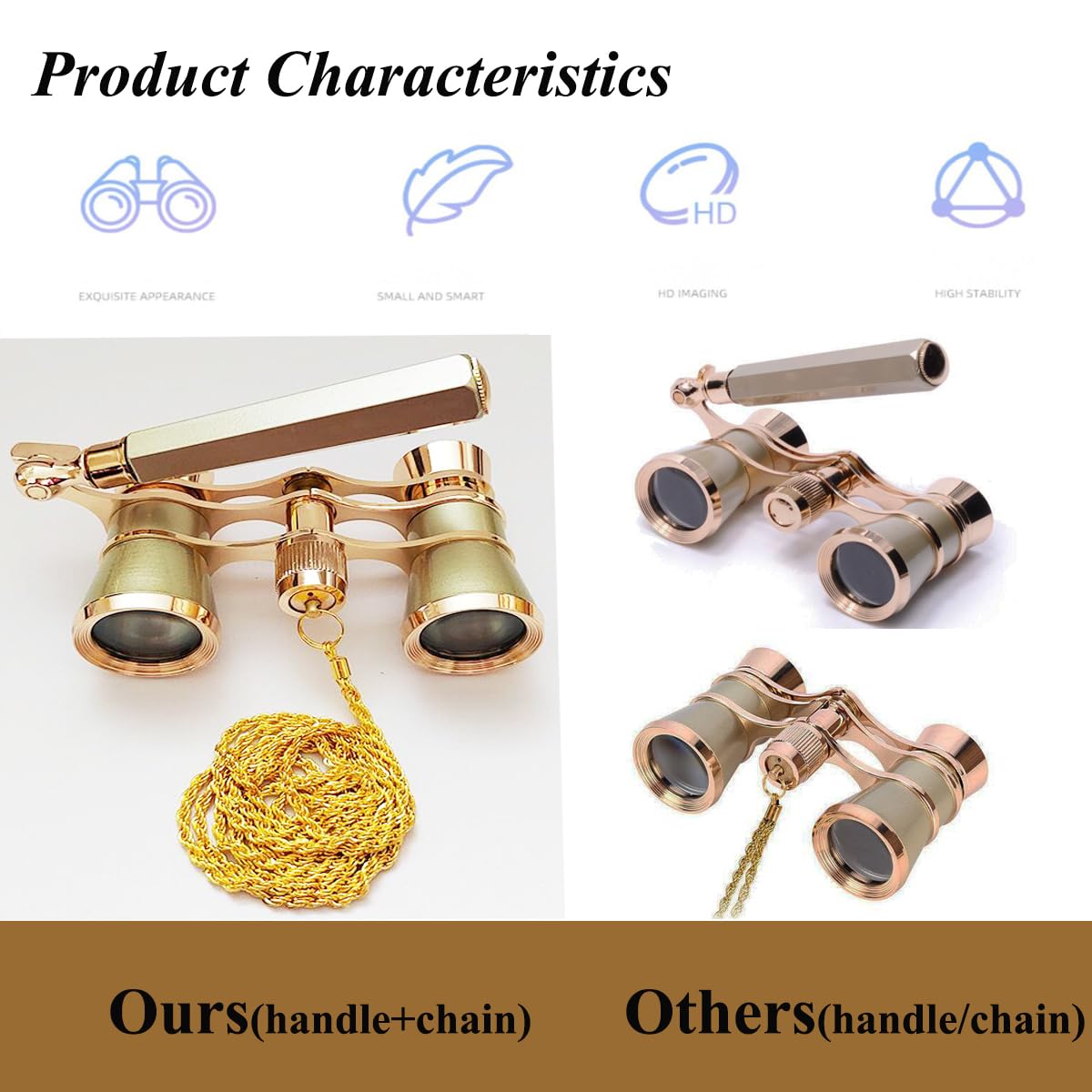 Binocular Telescope 3 25,Foldable Handle,Compact Lightweight With Chain,Opera Glasses With Handle For Women And Children (Gol