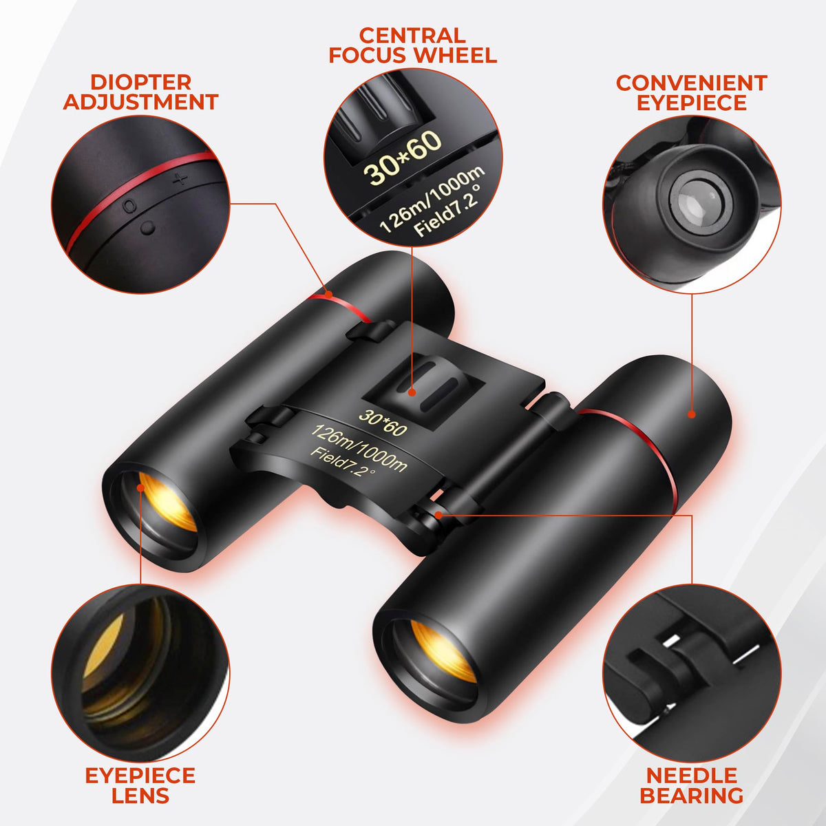 Bird Watching Binoculars For Adults 30X60 Travel Binoculars For Bird Watching Concert Compact Binoculars With Zoom Optics Hunt