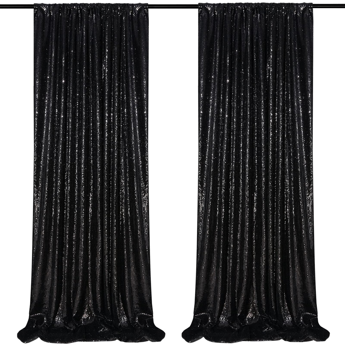 Black Sequin Backdrop 2 Panels 2Ftx8Ft Halloween Backdrop Curtains Party Decorations Birthday Wedding Photo Backdrop