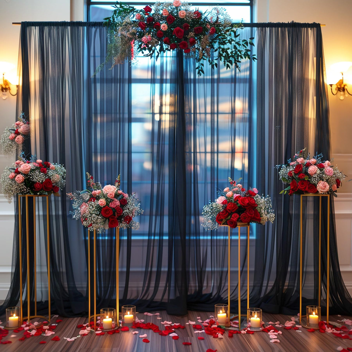 Please Note,Only Backdrop Drapes Curtains,Other Decorations And Backdrop Stand Need You To Be Purchased Separately. Material: Two Layers Soft Black Tulle. Elegance Simple, Generous, Romantic, Luxury, Funny. With Rod Pocket Across The Top For Easy Hanging On A Pipe Or Stand. Can Be Decorated As A Beautiful Decoration Embellishment Of Your Activities. Create A Comfortable And Romantic Atmosphere For Wedding, Party, Festival, Family. Can Be Used As Photo Booth Backdrop, Pretty Curtain Backdrop. Backdrop Curtain Panels Are Great As A Room Decoration And Also As A Weddings, Christmas Halloween Parties, Events And Even Trade Show Booths Decorations. Best Choice It Can Easily Be Used At Weddings, Restaurant, Party, Events, Or Even Your Home! An Advantage To Using Mesh Is That It'S Extremely Versatile And Can Be Dressed Up For An Ultimate Glam Event, Dressed Down For A Low Key Chic Rustic Wedding, And Can Even Be Used As A Clean And Modern Look For A Minimalist Event!