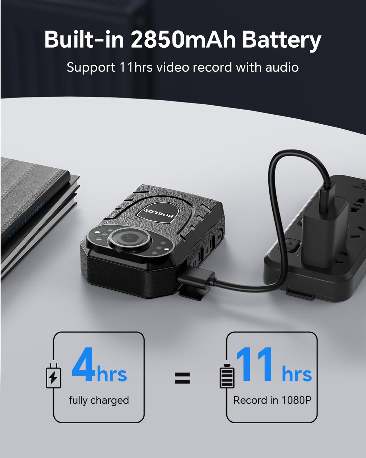Boblov Kj21 Body Camera, 1296P Body Wearable Camera Support Memory Expand Max 256G, 8 10Hours Recording Police Body Camera Light