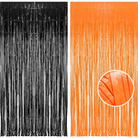 Braveshine 1 Black 1 Orange Tinsel Photo Backdrop Curtains 3.2X8.2Ft Foil Fringe Streamer Curtain For Birthdays, Halloweens, G