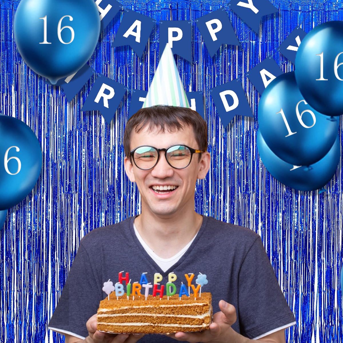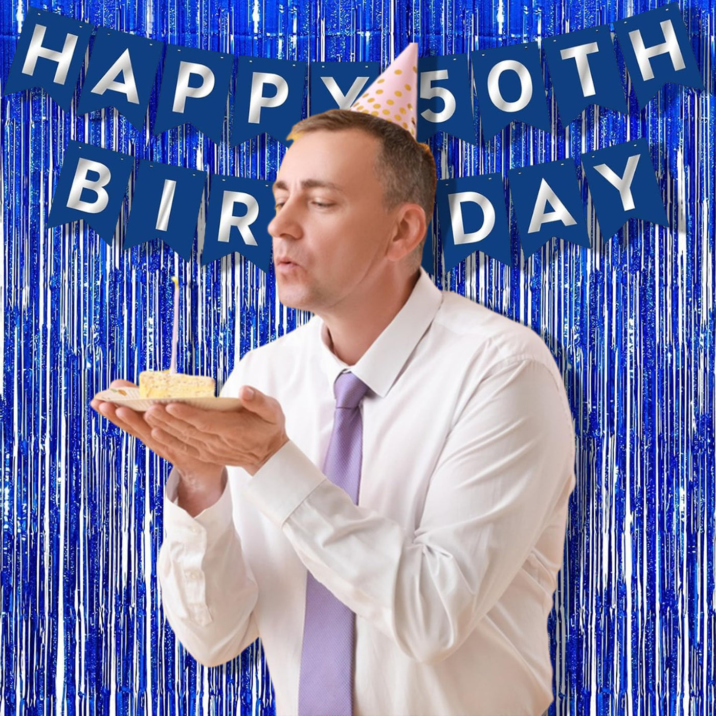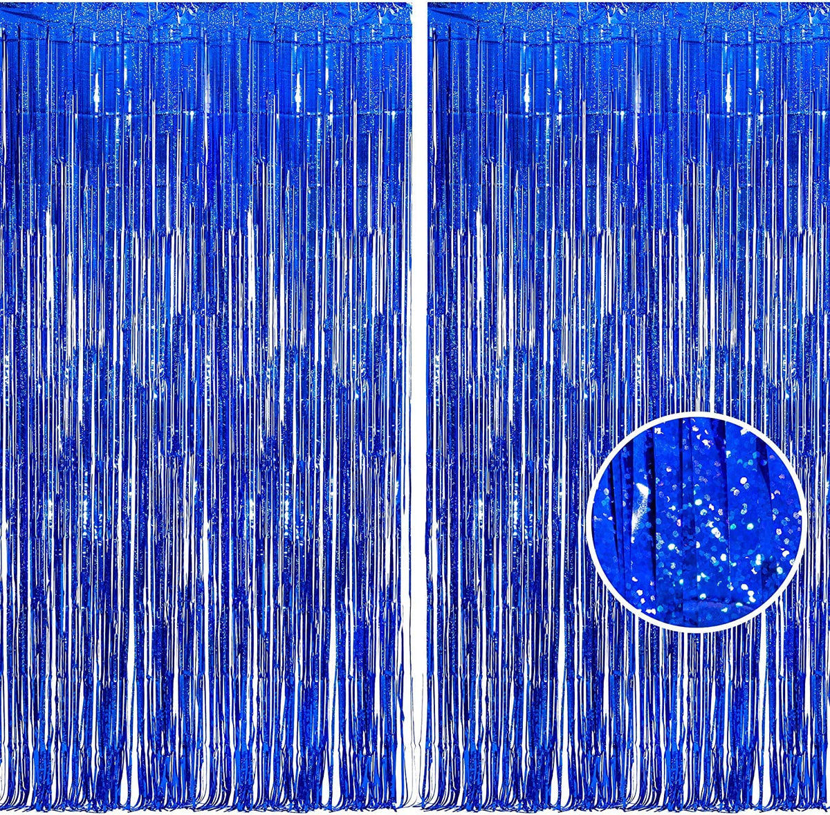 Braveshine Blue Tinsel Foil Fringe Curtains 2Pcs 3.2X8.2 Ft Metallic Holidays Photo Backdrop For Boys Men Birthdays Homecoming