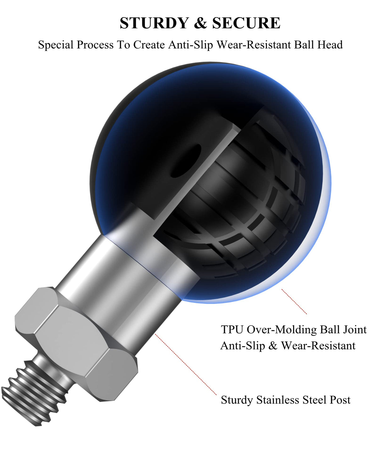 The 1 Inch Ball Adapter With 1/4'-20 Threaded Post For Action Camera & Camcorder. Compatible With Ram Mounts B Size Double Socket Arm. Tpu Over-Molding Ball Joint, Wear-Resistant And Anti-Slip. Using Threaded Steel Stud, For Durability And Reliability In The Most Demanding Environments. (Pack Of 2)