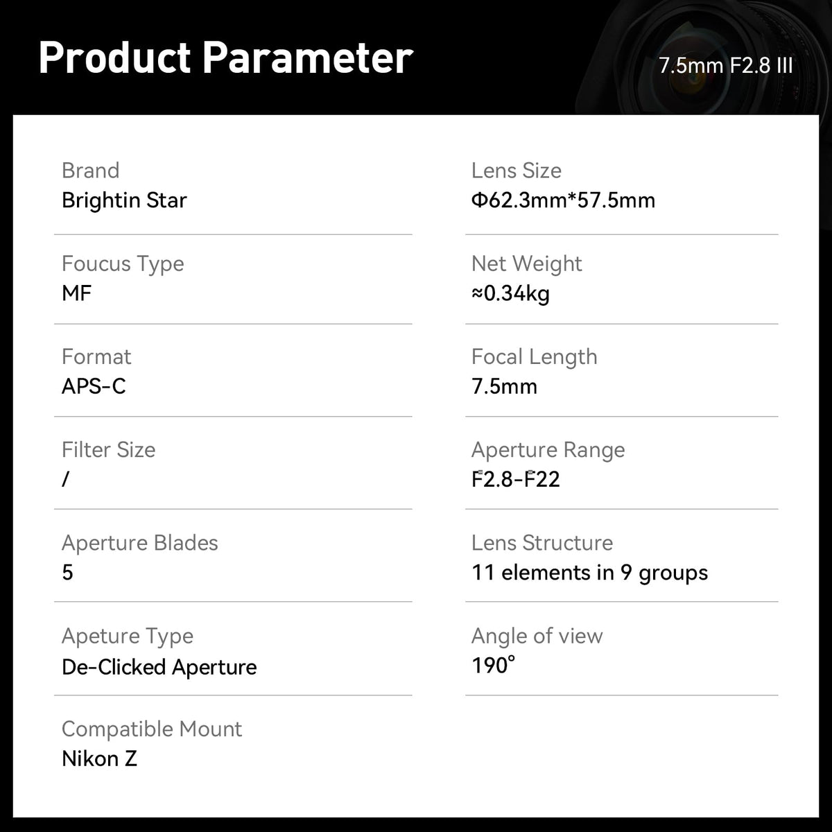 Brightin Star Aps C Lens (7.5Mm F2.8 Black, Fit For Nikon Z Mount)