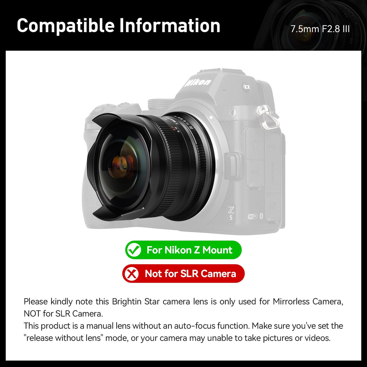 Brightin Star Aps-C Lens (7.5Mm F2.8 Black, Fit For Nikon Z Mount)
