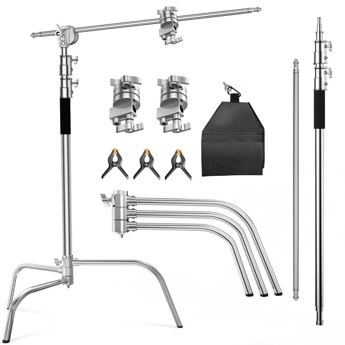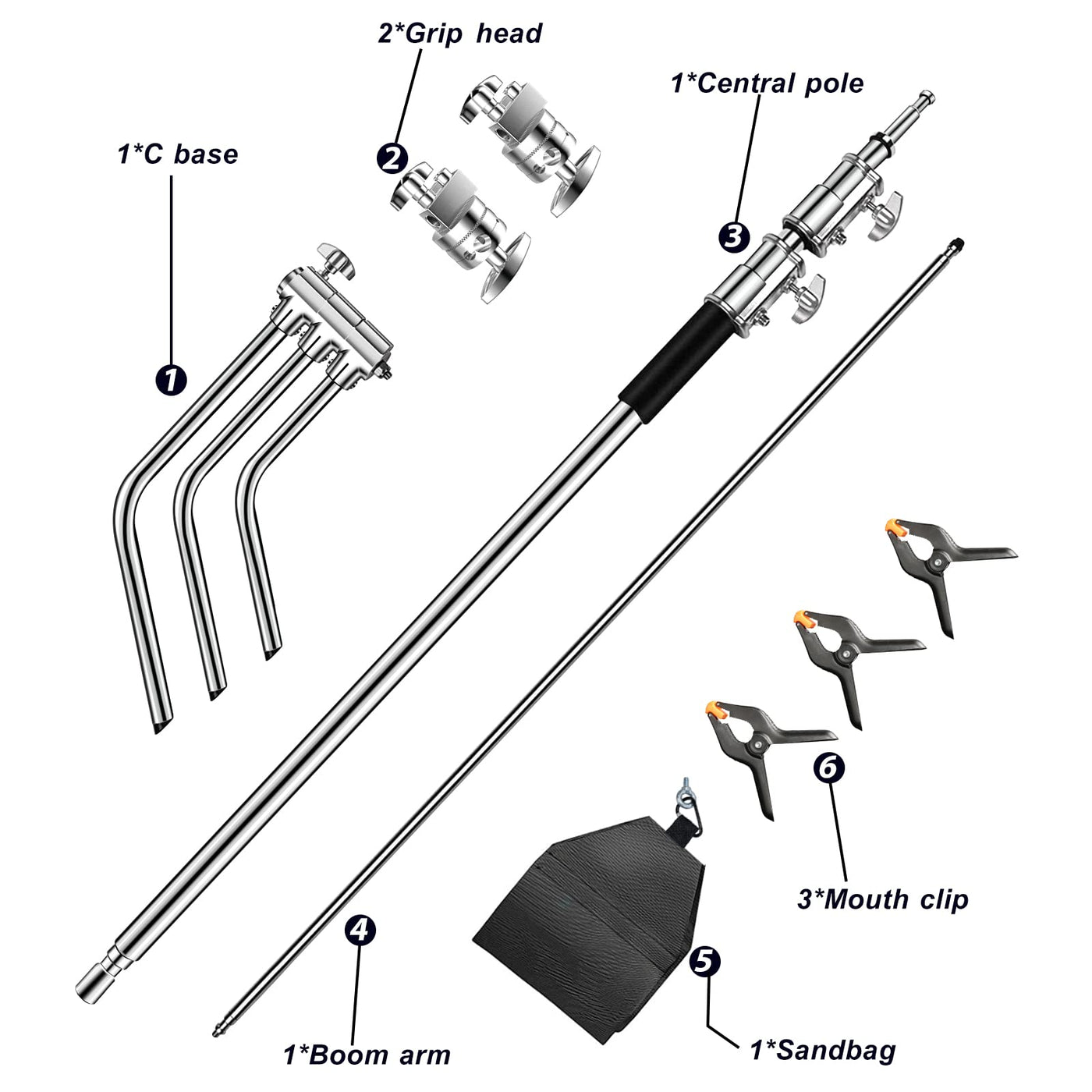 C Stand With Boom Arm Photography Light Stand Max Height 10.5Ft/320Cm, With 4.2Ft/128Cm Holding Arm , Stainless Steel Heavy Du